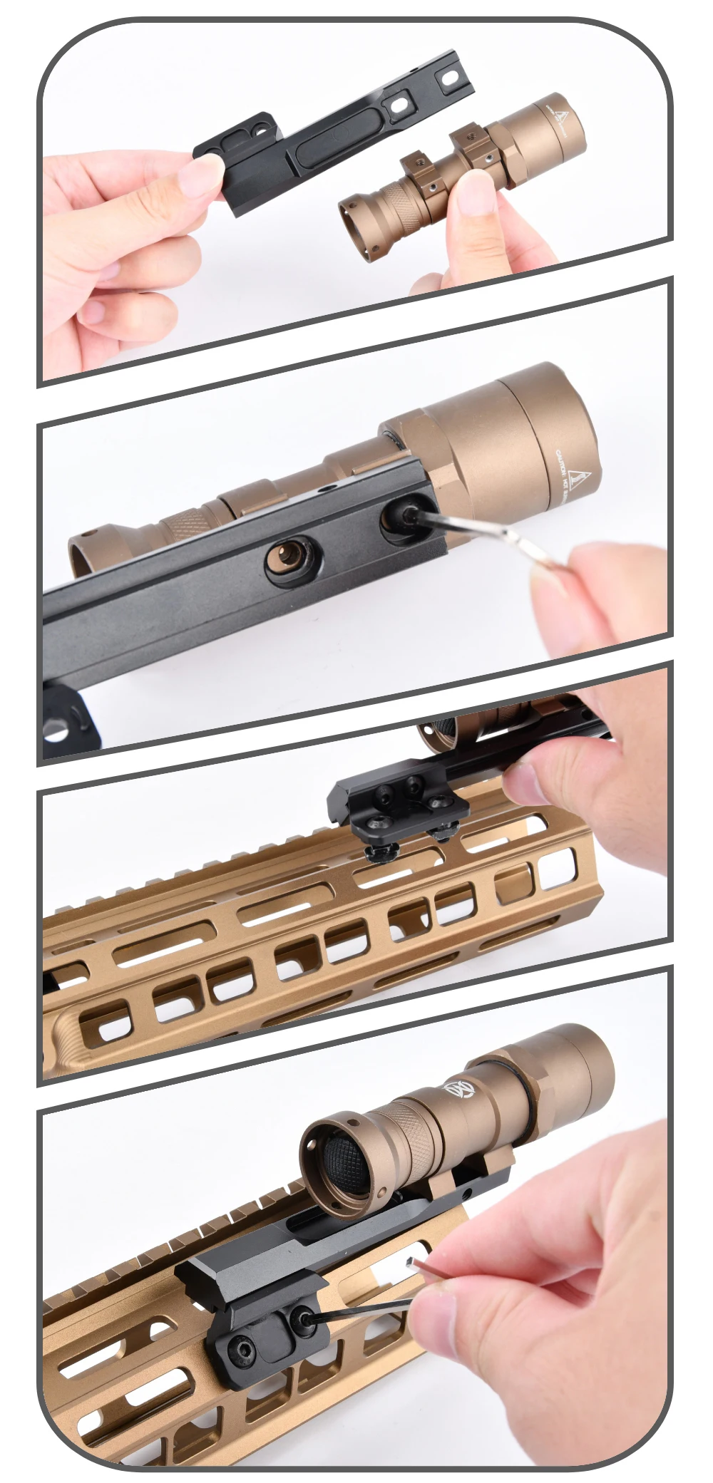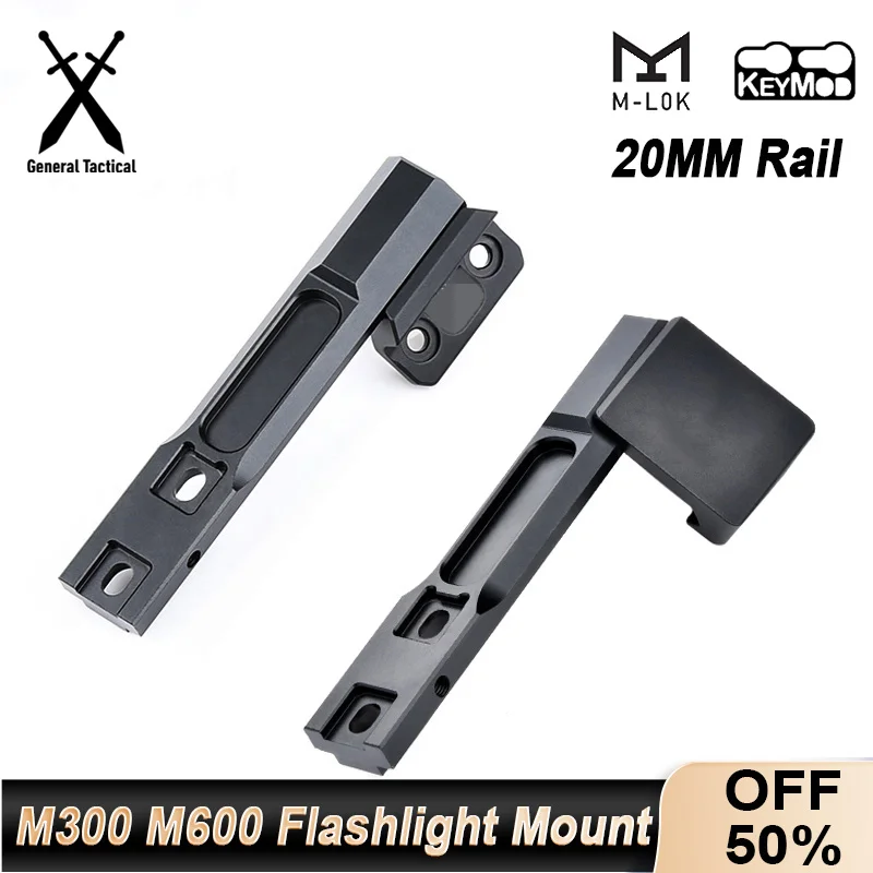 Soporte de luz adaptable táctico Offset, compatible con carril de 20mm, m-lok, Keymod, Surefir, M600, M300, arma, Airsoft, accesorios, Base de linterna