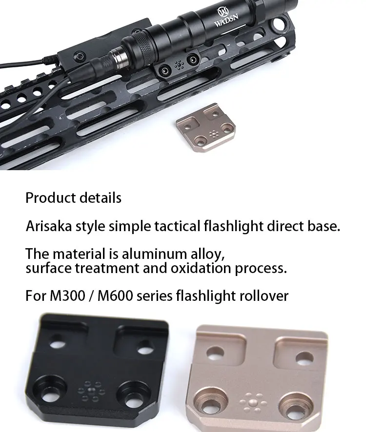El soporte para linterna táctica WADSN está diseñado para metal base CNC M300 M600 y ofrece una fijación robusta y confiable para su rifle explorador.