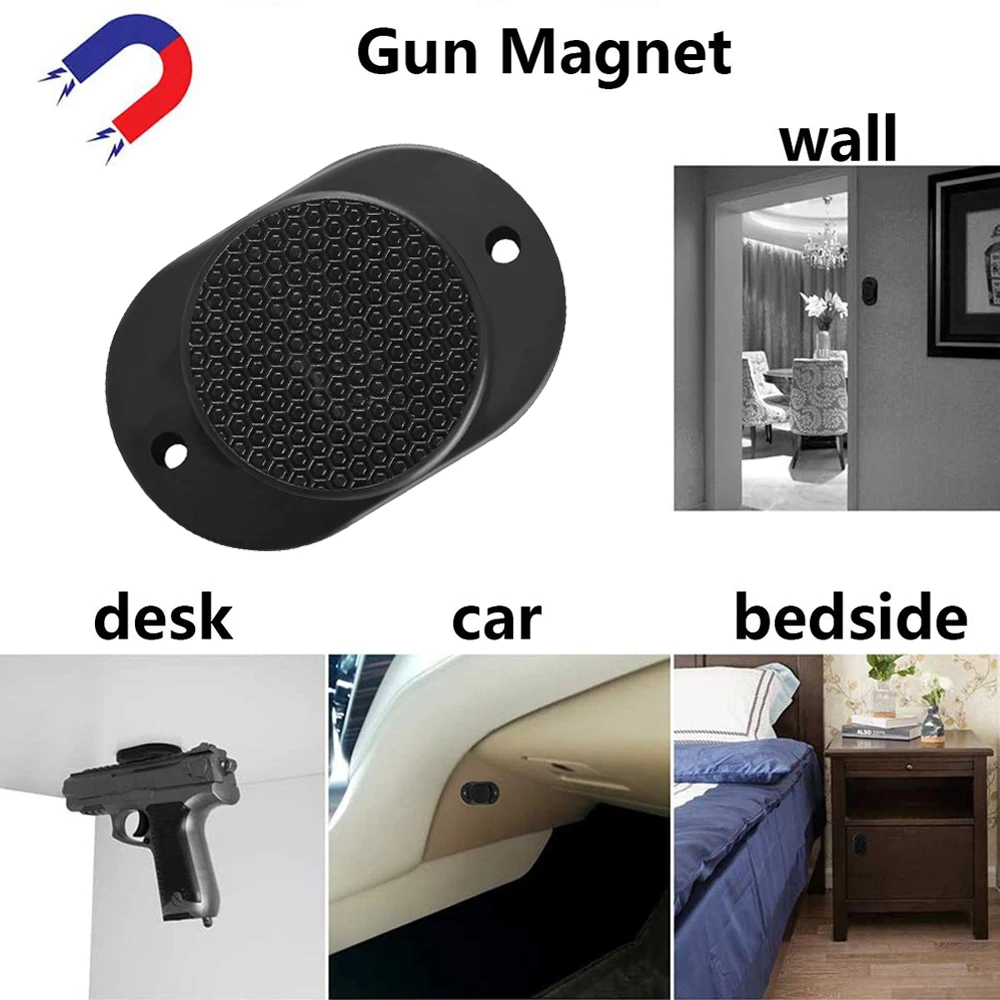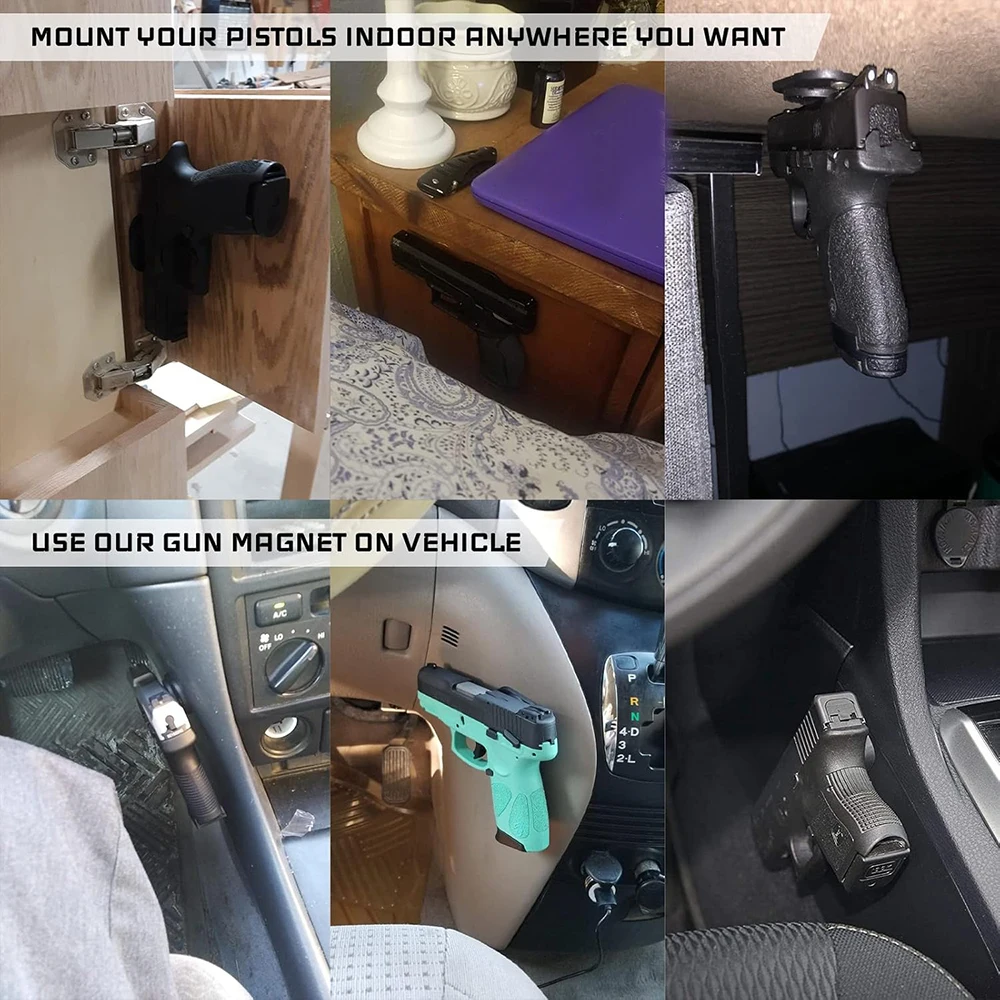 Los imanes para pistola están construidos con imanes de neodimio, lo que le permite sostener el arma de fuego de forma segura.Compatible con casi todos los tipos de armas: pistolas, escopetas y revistas.