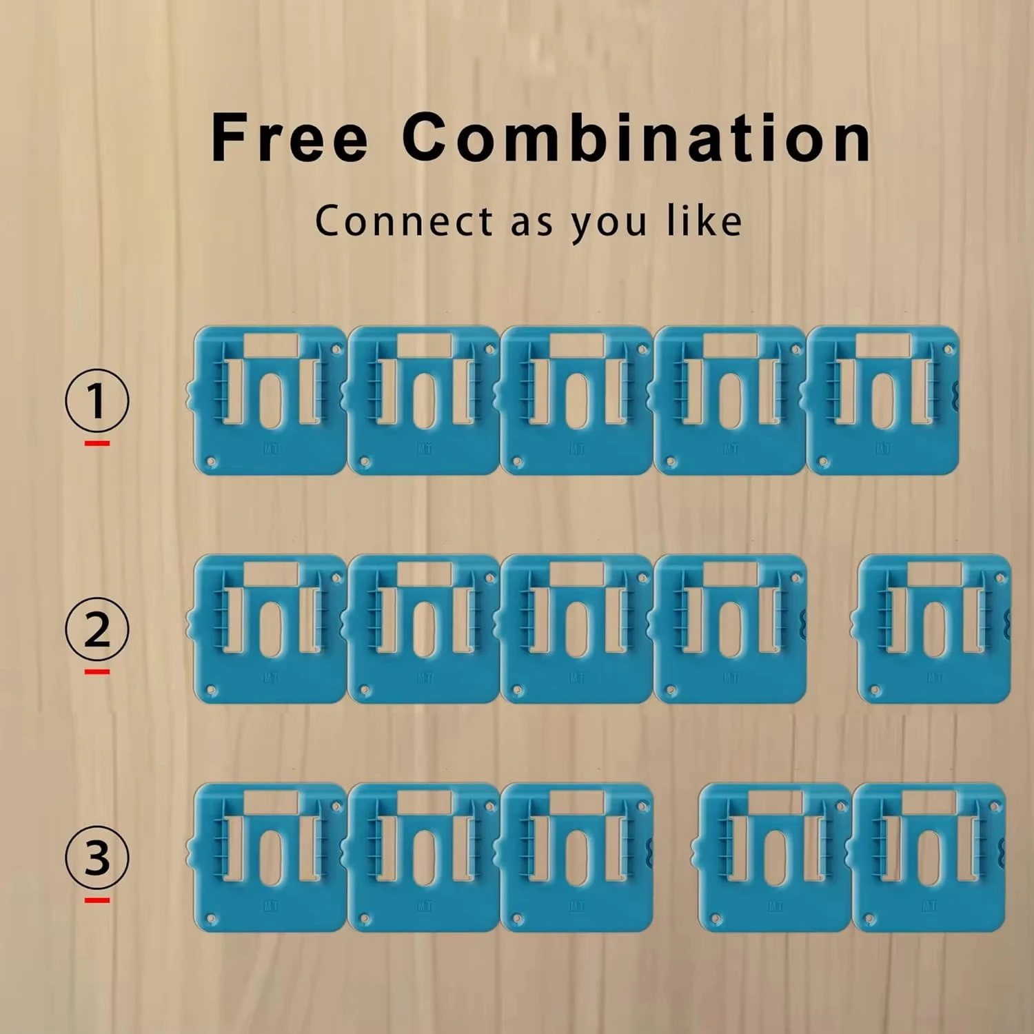 * El soporte de batería se adapta perfectamente a la batería Dewalt/Makita/Milwaukee y es muy fácil de usar.Funcionan bien para colgar las baterías de forma organizada en una pared o debajo de un estante.