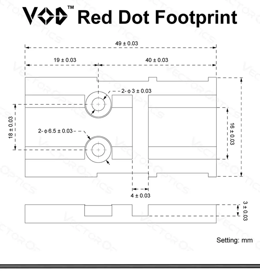 Huella: VOD (apto para miras de punto rojo de línea Vector Optics SCRD-63)