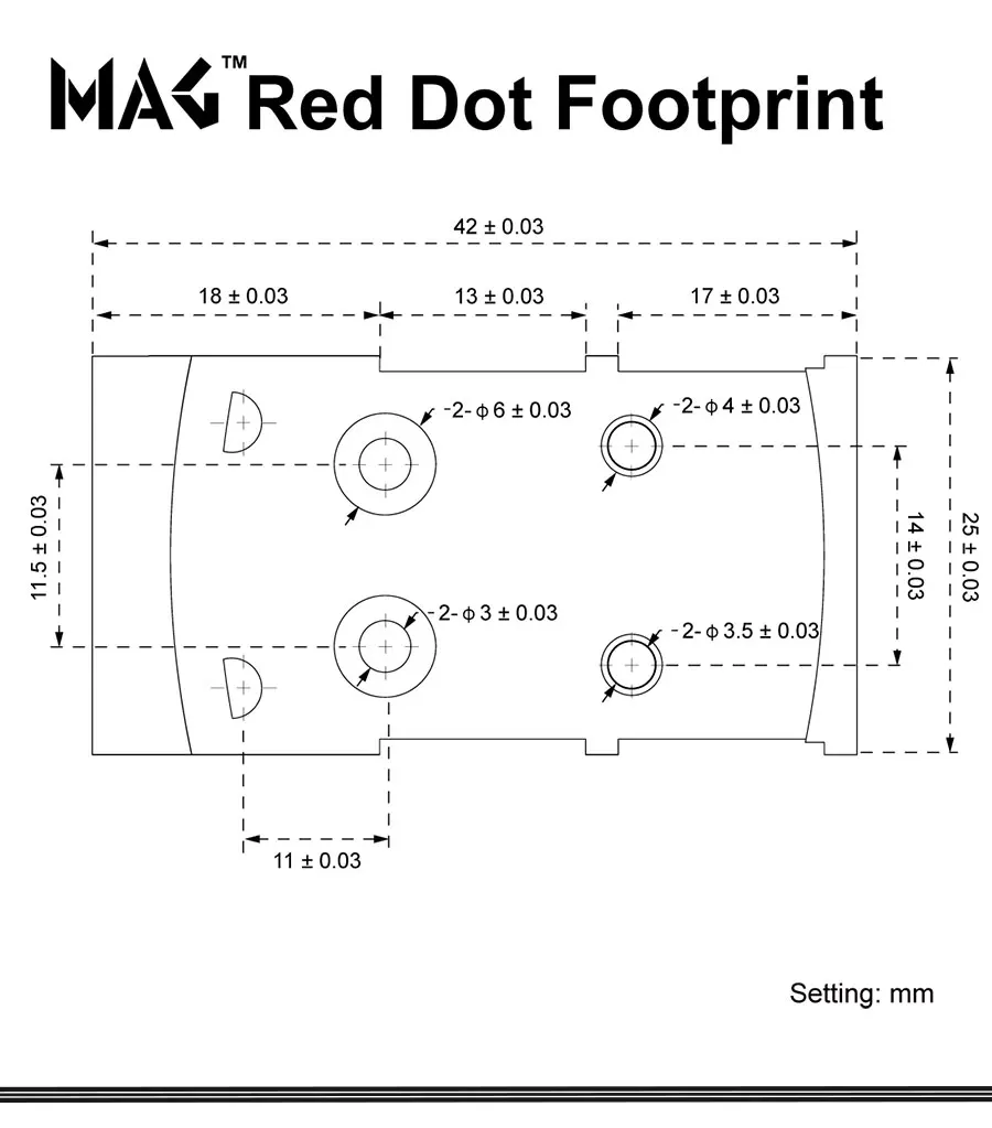 3.Compatible con todas las miras de puntos rojos con huella de Frenzy MAG/MOJ/ TEK/GIN