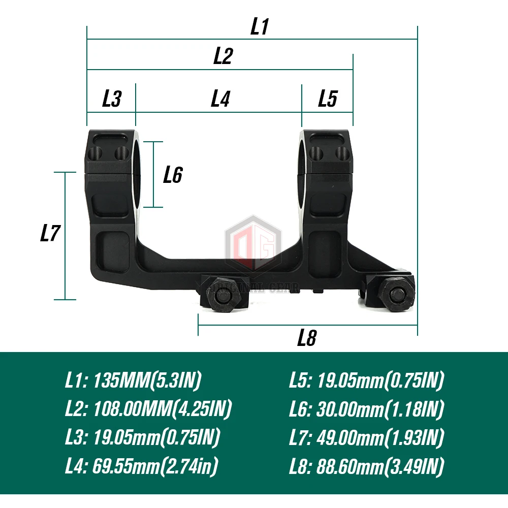 Otra ventaja del mecanizado a partir de una sola pieza de aluminio es que GE es capaz de crear un soporte con ubicaciones de tapas que se adaptarán a una amplia variedad de visores. Todos los soportes están disponibles en opciones de inclinación cero y 20 MOA, y en capa dura anodizada tipo 3 negra o en capa dura anodizada DDC (Desert Dirt Color) tipo 3.