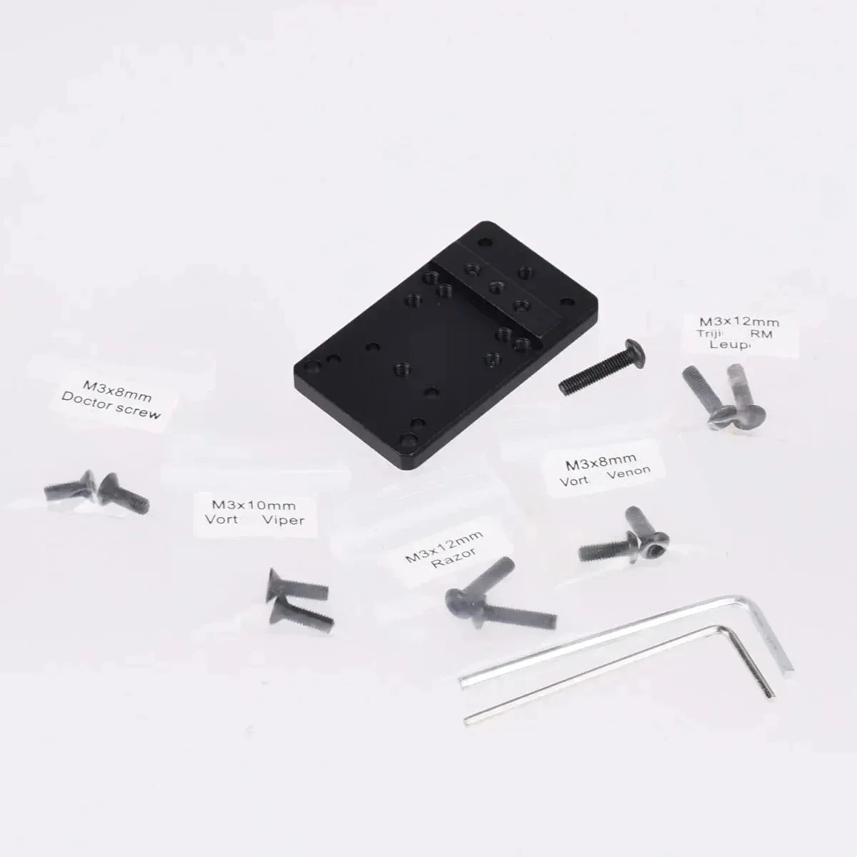 Instalación del producto:- Dependiendo de qué óptica tengas necesitarás encontrar los tornillos que se correla con tu óptica particular.Hay dos tornillos especiales para Trij RM.Una vez que haya asegurado el GUM a su diapositiva y haya encontrado el poste correcto (dos juegos de postes de refuerzo incluidos) para su óptica, continúe y monte su óptica en el poste y use los dos tornillos de seguridad finales más largos para asegurar su óptica al GUM.- Se recomienda encarecidamente que un armero instale el GUM y utilice las herramientas correctas para la instalación.- LDP* se puede montar pero no con postes reforzados para asegurar el 100%ACTUALIZACIÓN: Hemos confirmado la compatibilidad con miras Red DotCaracterísticas del producto:- Soporte óptico universal para la mayoría de los sitios proliferados en el campo