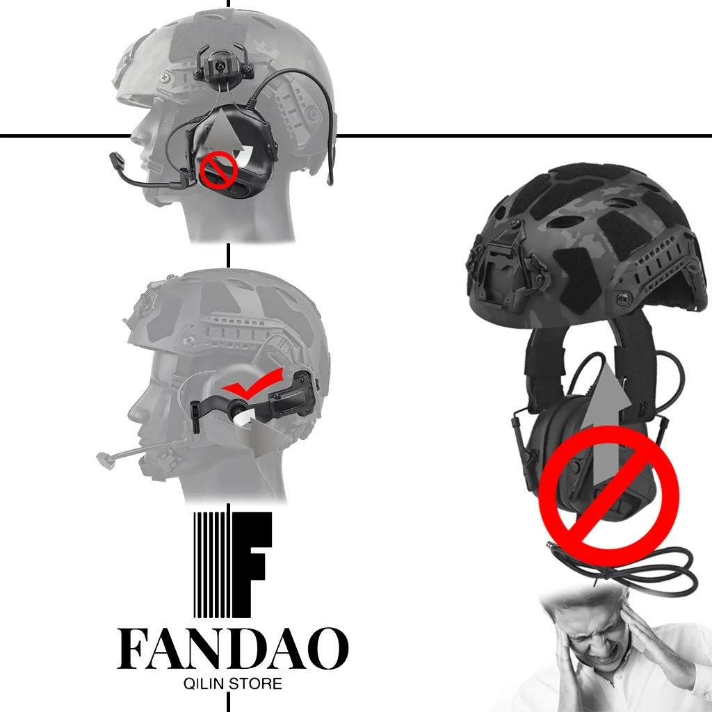 Tanto la conexión de los auriculares como la conexión del riel se pueden girar 360 °, por lo que puede modificar fácilmente la posición de los auriculares tácticos; Flexible para adaptarse a diversos entornos y ocasiones.