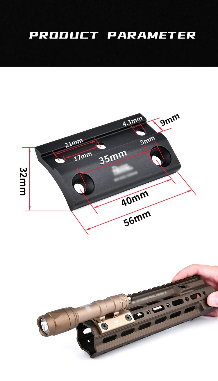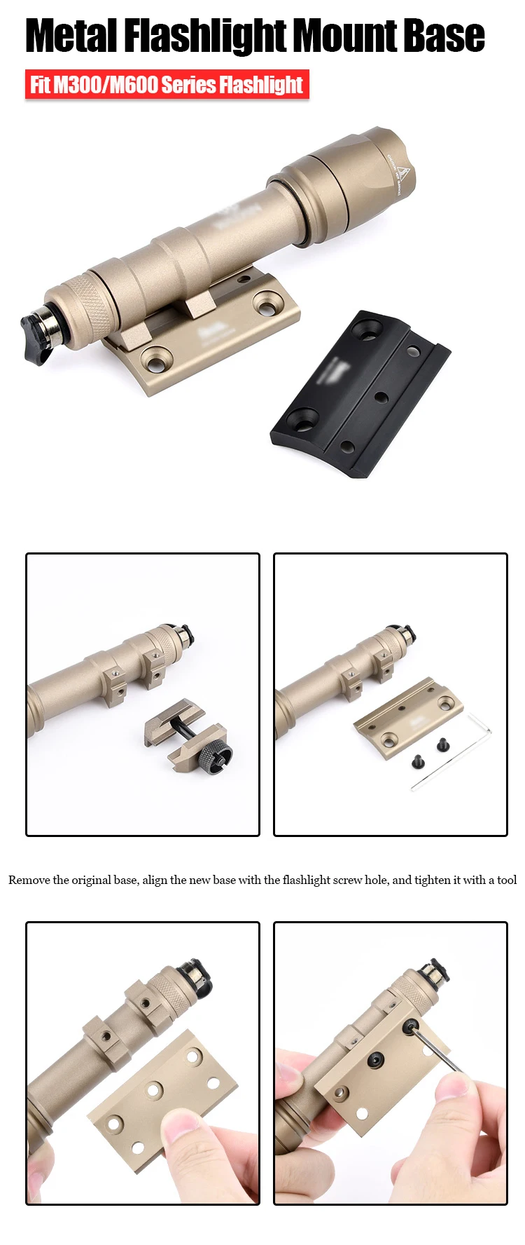 Soporte de montaje compensado para linterna de Metal WADSN, Base de riel 416SMR para linterna serie M300 M600, accesorio para pistola Airsoft