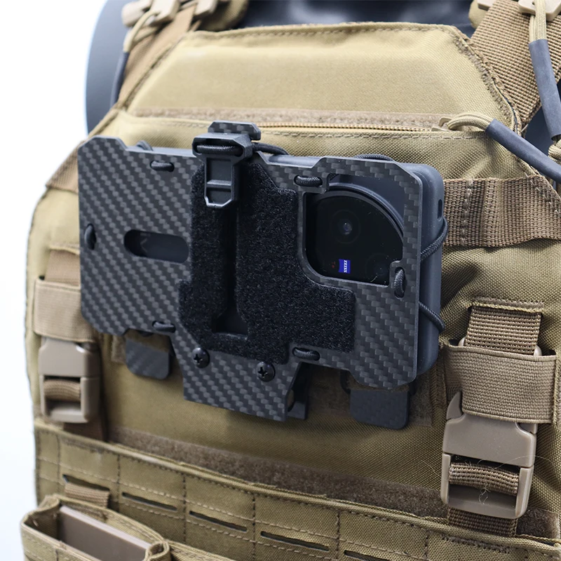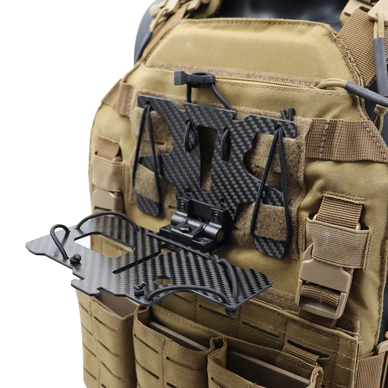 Soporte de montaje de sistema Molle de fibra de carbono, chaleco táctico Universal, tablero de navegación plegable para colgar en el pecho para teléfono móvil