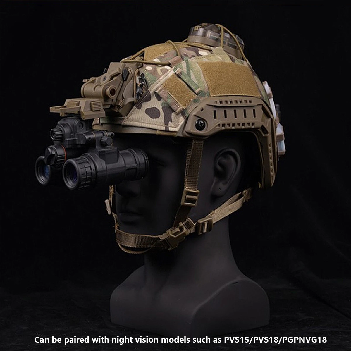 5.Compatible con varios modelos de visión nocturna:El soporte para casco de nailon está diseñado específicamente para ser compatible con una variedad de modelos de visión nocturna, incluidos los populares como PVS15, PVS18, PGPNVG18 y otros.Esta compatibilidad garantiza versatilidad y amplía su usabilidad.