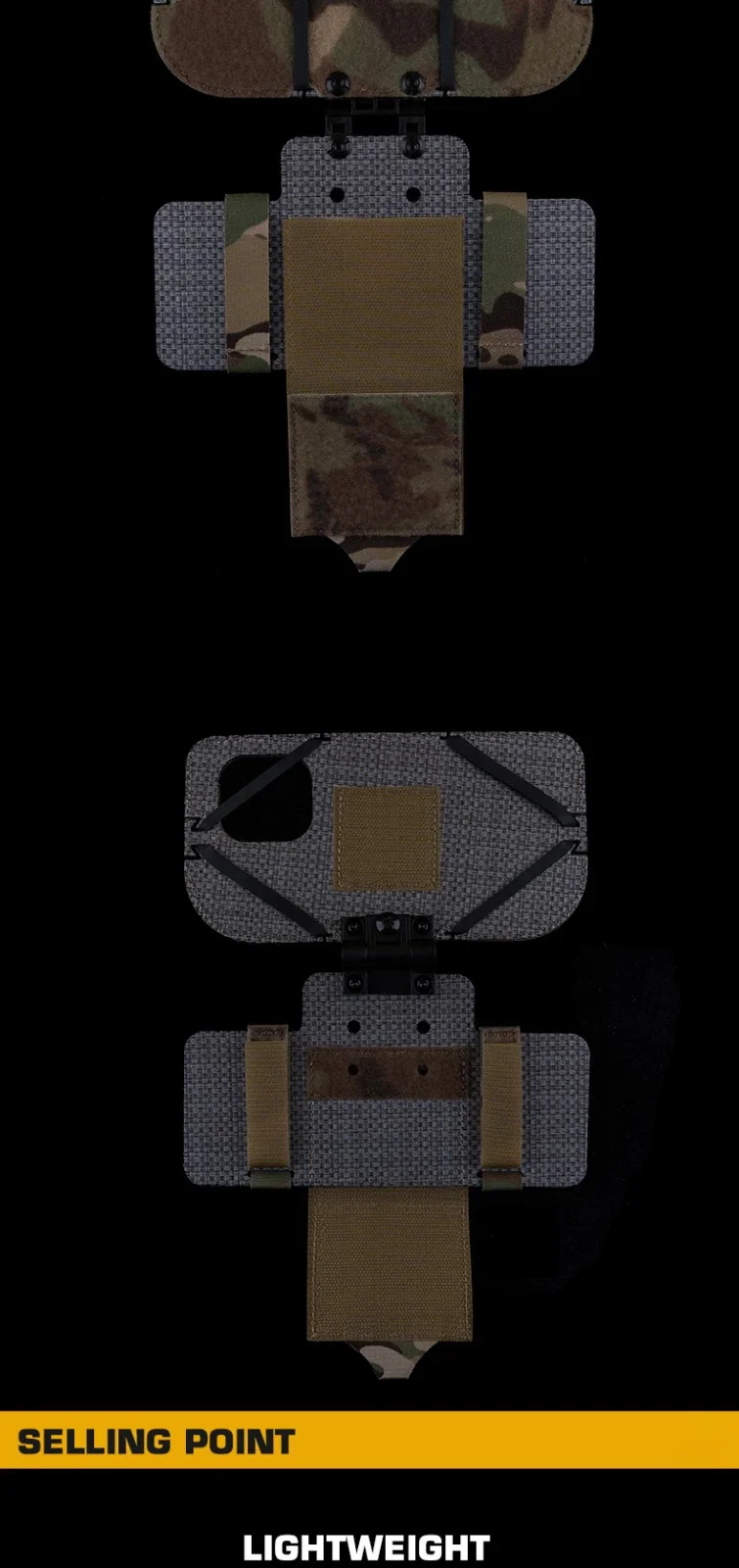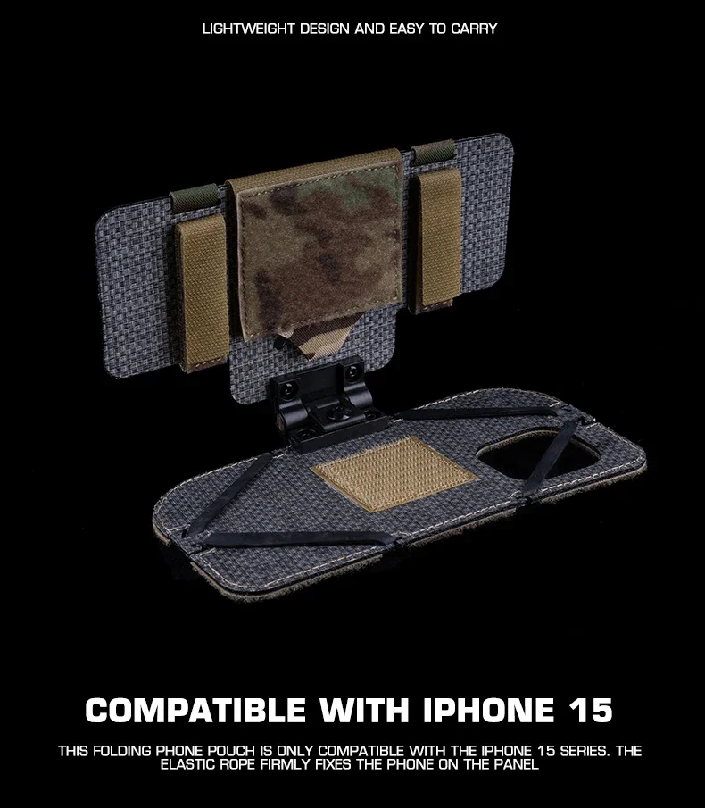 Soporte de navegación para chaleco táctico para iPhone 15 Pro Max Compatible con MOLLE, tensión plegable ajustable, fibra de carbono y material de nailon