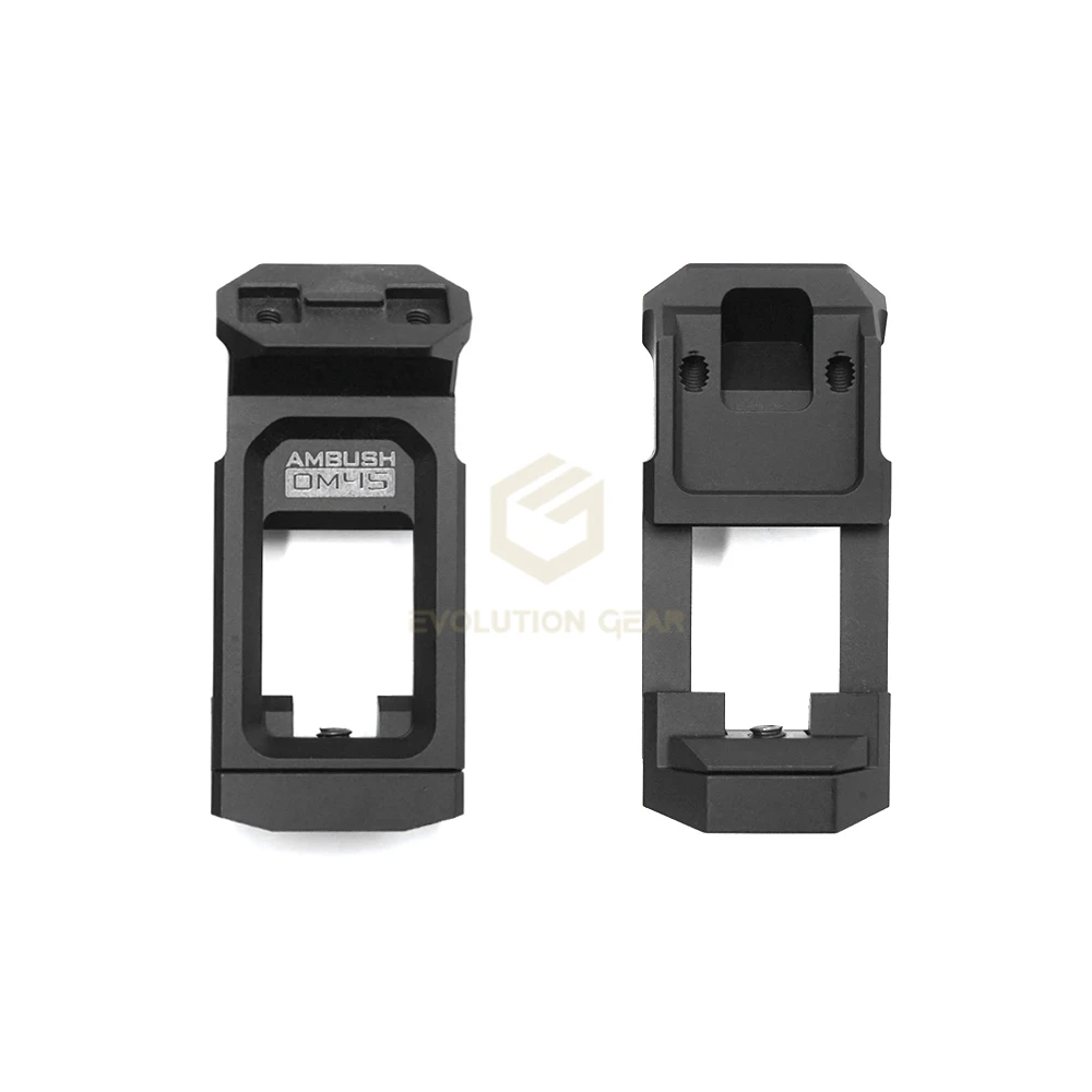El soporte óptico SI de 45 grados le ofrece un diseño modular de placa de montaje doble que cubre casi todos los puntos rojos convencionales del mercado. Cuando desee ejecutar una configuración de óptica dual y tener una Mini/Micro Red Dot Sight (MRDS) de corta distancia con un alcance óptico variable de baja potencia (LPVO), este soporte óptico de 45 grados es un perfil bajo y de alta resistencia accesorio sin forzar que elija solo un punto rojo con el que tiene que emparejarlo. El ángulo de 45 grados debe aprovechar la mayoría de los visores LPVO junto con dos posiciones de montaje para elegir en el lado de montaje multióptico SI. Coloque fácilmente un MRDS junto a un LPVO con el soporte de riel SI Picatinny de perfil bajo que se asienta al ras con la parte superior del riel Pic o ligeramente debajo, lo que facilita colocarlo debajo de un visor o un soporte para visor. El 45 viene con una placa de montaje de doble espacio que tiene el soporte multióptico SI en un lado y el espacio estándar Aim Mic para puntos rojos compatibles con T1T2 en el otro lado, lo que la convierte en una nueva opción modular innovadora para un mercado diverso.