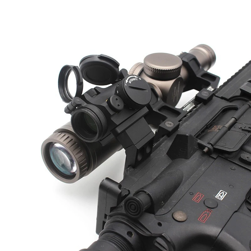 La base y las placas ópticas se pueden invertir, lo que hace que el soporte sea completamente ambidiestro. Se recomienda que elija la altura de la placa que corresponda a su altura óptica primaria. Por ejemplo, si su visor está montado en un soporte de 1,54 "de altura, elegiría la placa de altura regular para su punto rojo compensado. Esto garantiza una soldadura uniforme y una transición perfecta entre la óptica primaria y el punto rojo compensado.