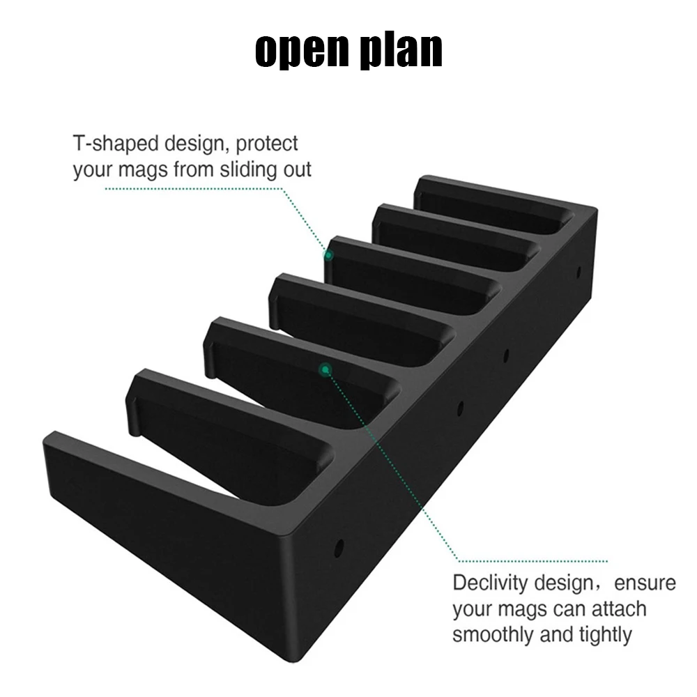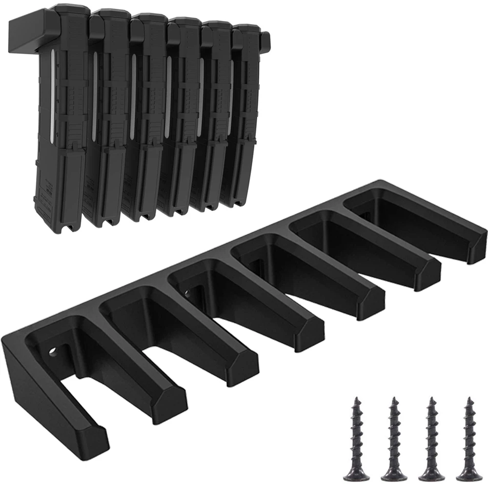2. 【Ahorro de espacio】 Maximice su espacio con nuestro cargador de pared: se monta fácilmente en paredes, cajas fuertes para armas o bancos de trabajo. Asegura hasta 6 cargadores con paredes de polímero reforzado que soportan 60 libras de fuerza, perfecto para cargadores de rifle pesados o apilamiento. equipo.Móntelo en cajas fuertes para armas, camiones o campos de tiro para guardar cargadores de armas de roca sólida.