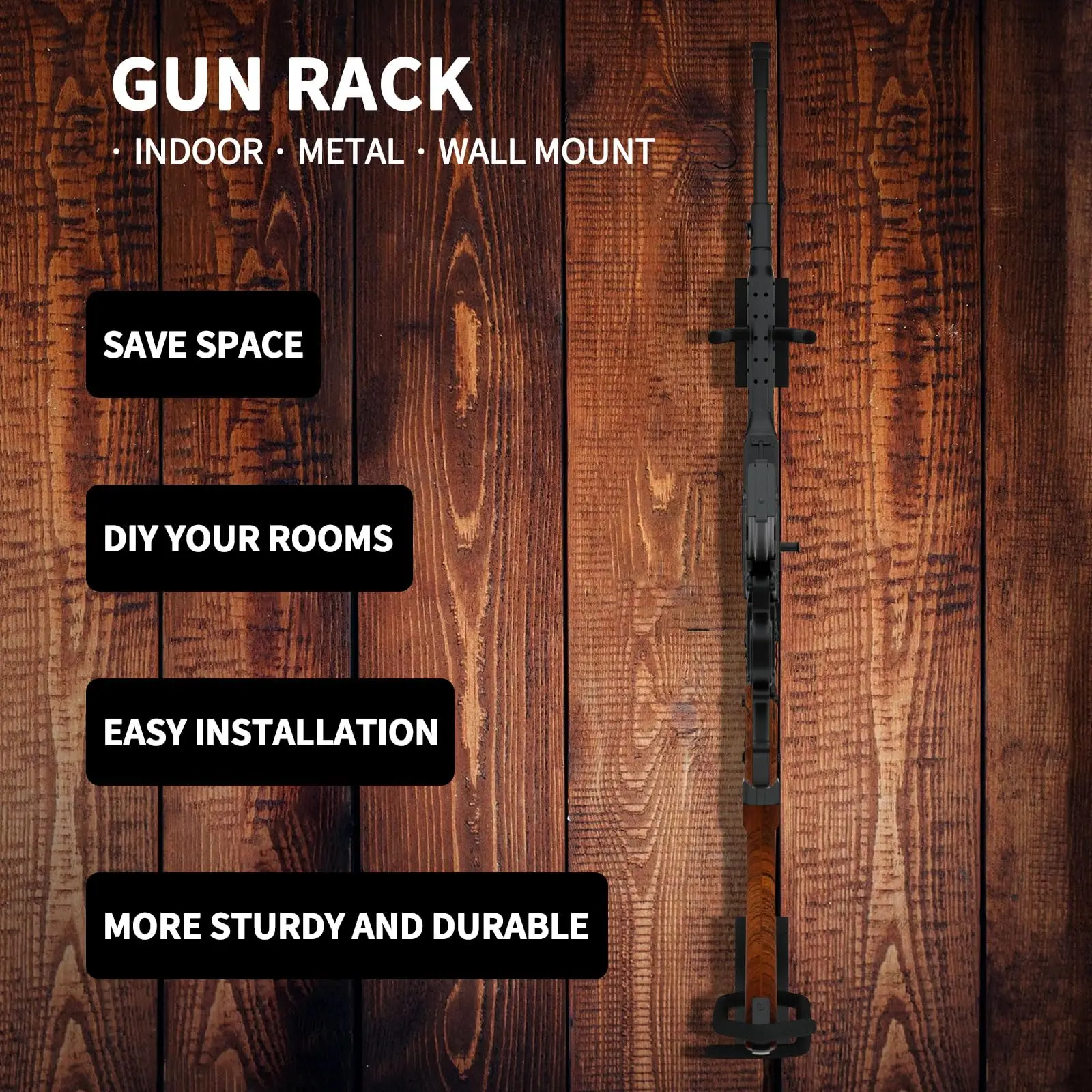 Soporte de pared para armas Soporte metálico para escopetas para interiores Soporte ajustable para almacenamiento de rifles Con acolchado suave Soporte vertical seguro para exhibición de armas
