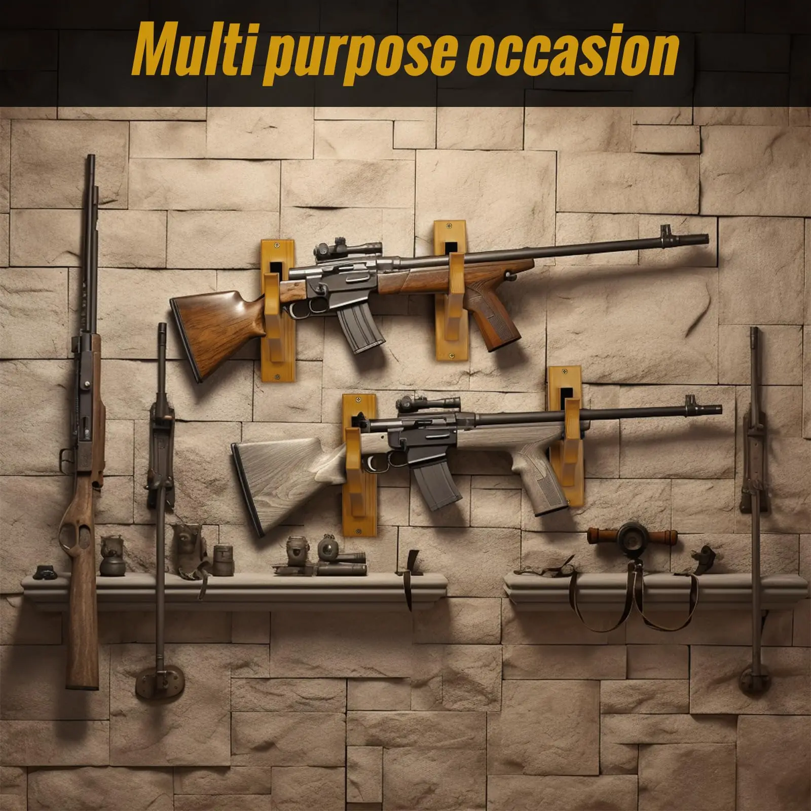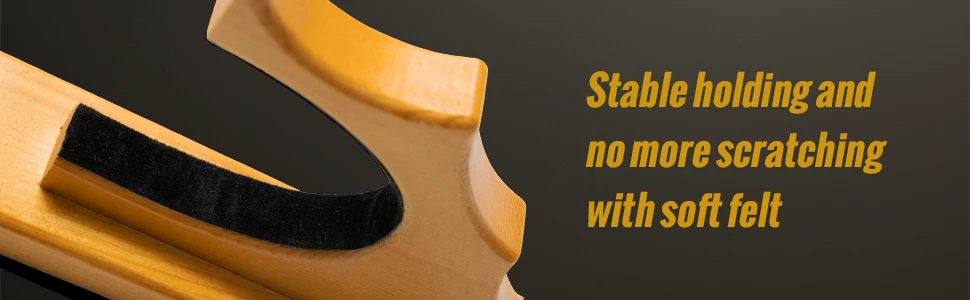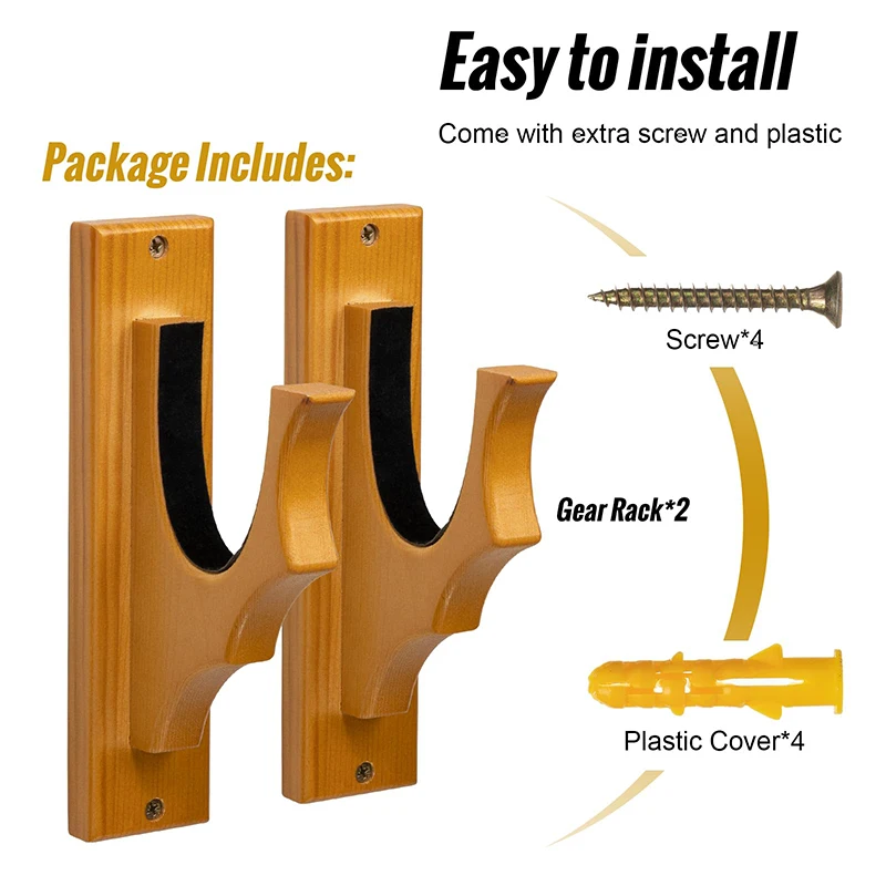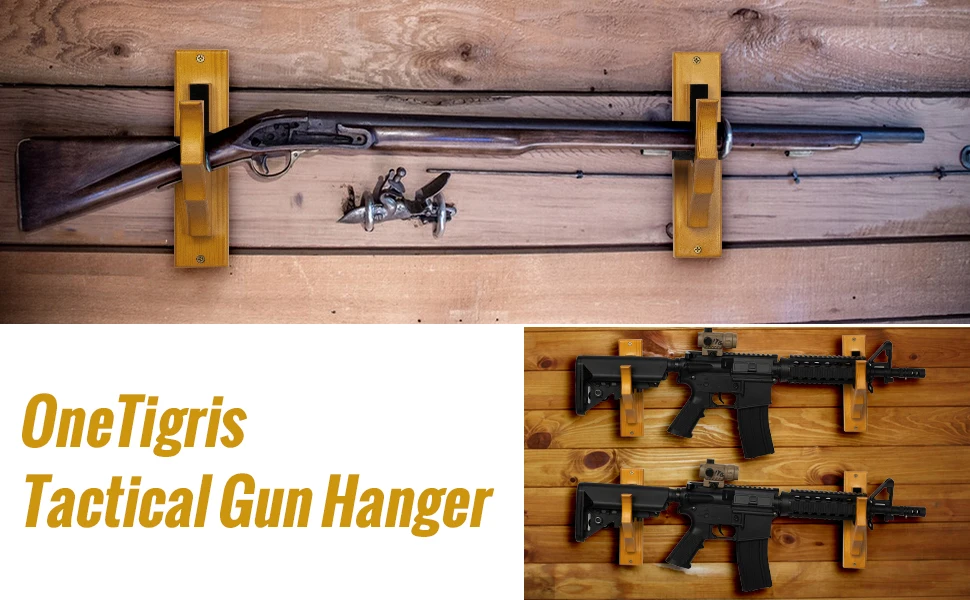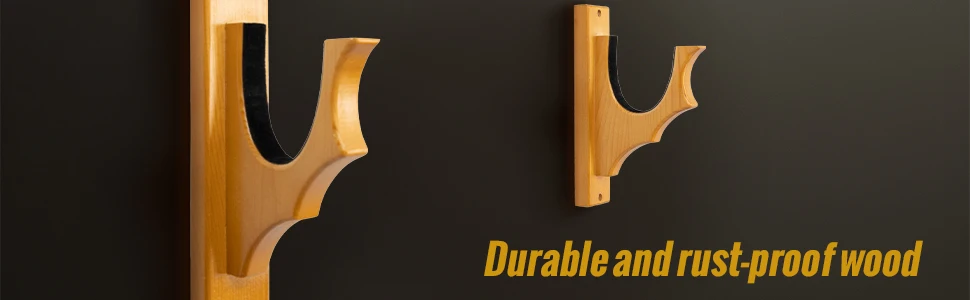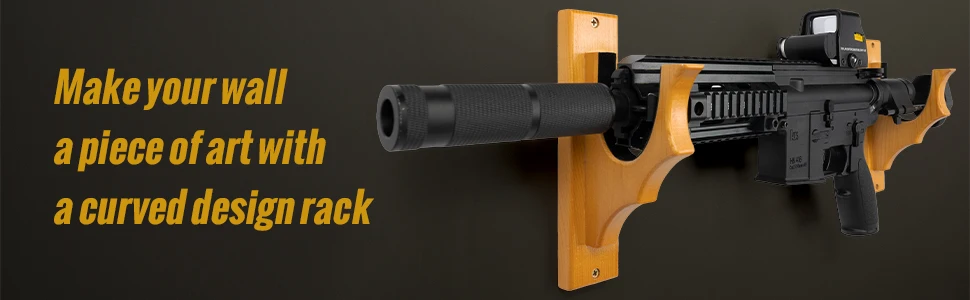 Construcción robusta: el colgador de madera está hecho de madera de pino 100% natural con construcción científica, lo que hace que el organizador horizontal de armas sea más fuerte y duradero.Cubierto con fieltro suave para evitar que las armas se rayen y resbalen.