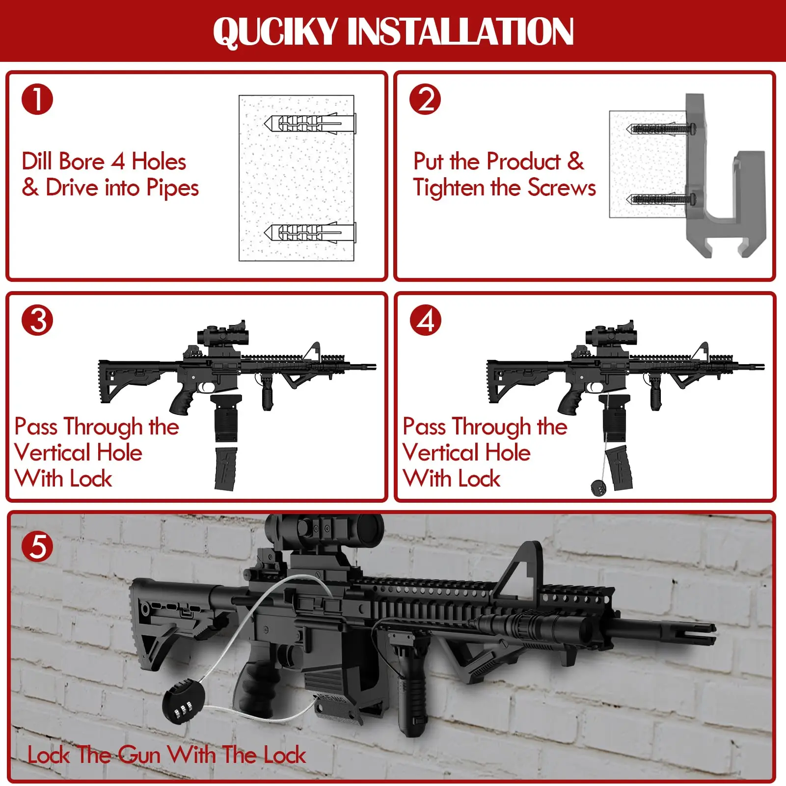 Easy to Use and Install: It only takes 2 minutes to install with the included anchors and screws through the wall gun mounting hole. The package includes 1 gun wall mount, 4 screws and 4 anchors (cable lock not included). In addition, we offer one-year unconditional ex-change and re-fund policy to provide you with worry-free shopping.