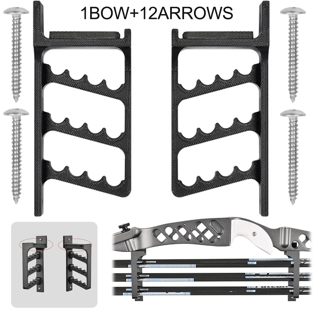 Soporte de pared para tiro con arco 2 en 1, soporte para flecha de arco, 12 ranuras, colgador de exhibición de flecha, soporte de arco compuesto para almacenamiento de flecha de arco