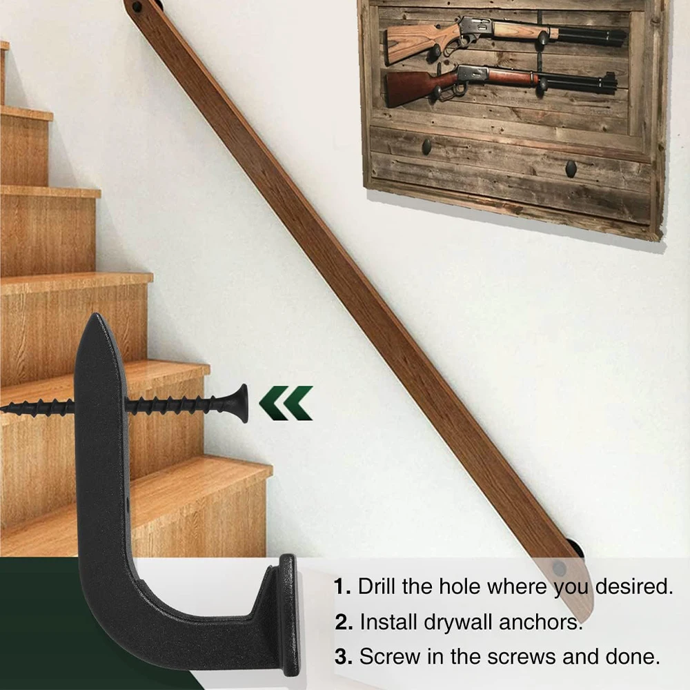 4.【Simple Installation】 Easy to install with all the hardware. Simply drill the hole where you desired. Install drywall anchors. Screw in the screws and you’re ready to go. Save your place for display your rifles or shotguns.