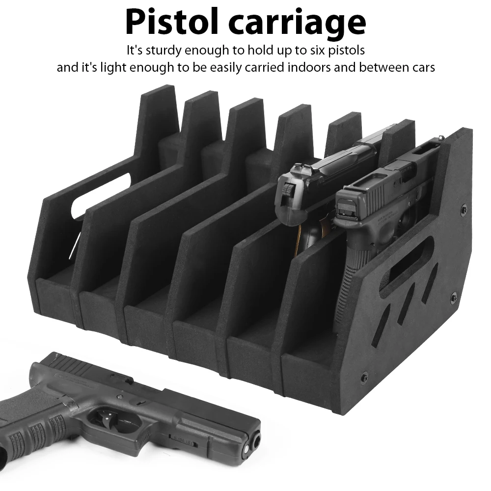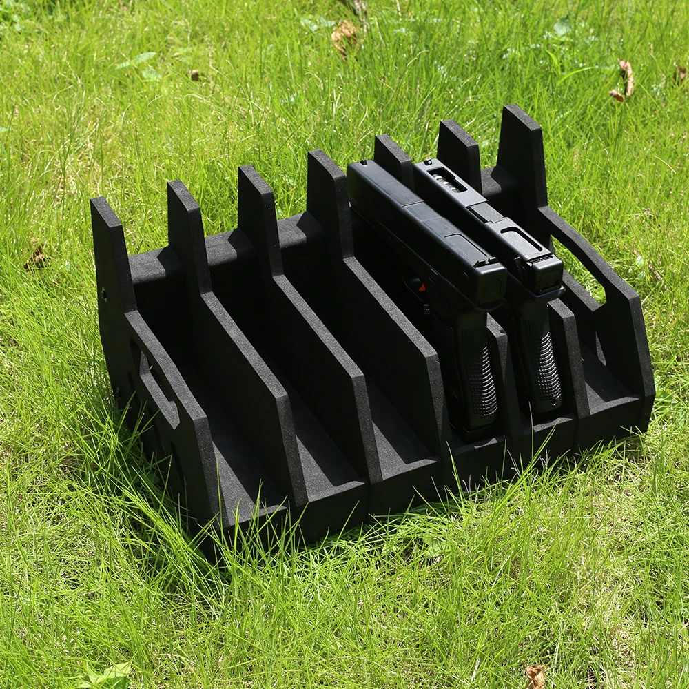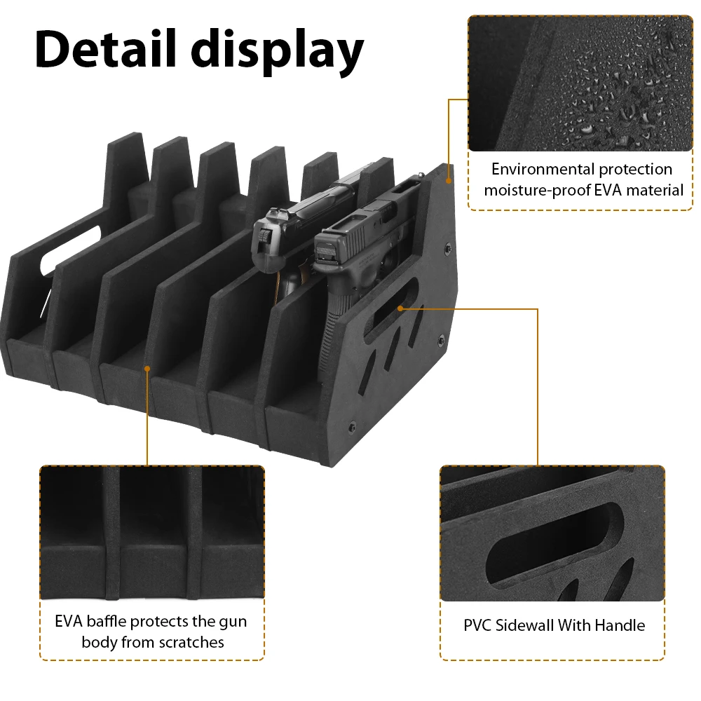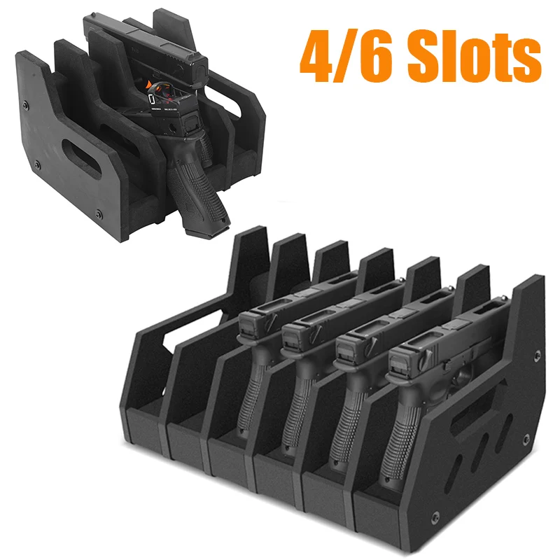 2. 【Diseño ajustable】 Cantidad de almacenamiento ajustable para pistolas, permite acomodar diferentes pistolas y adaptarse al espacio de almacenamiento limitado en el gabinete de sus cajas fuertes para armas.