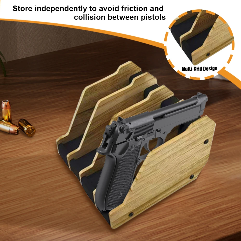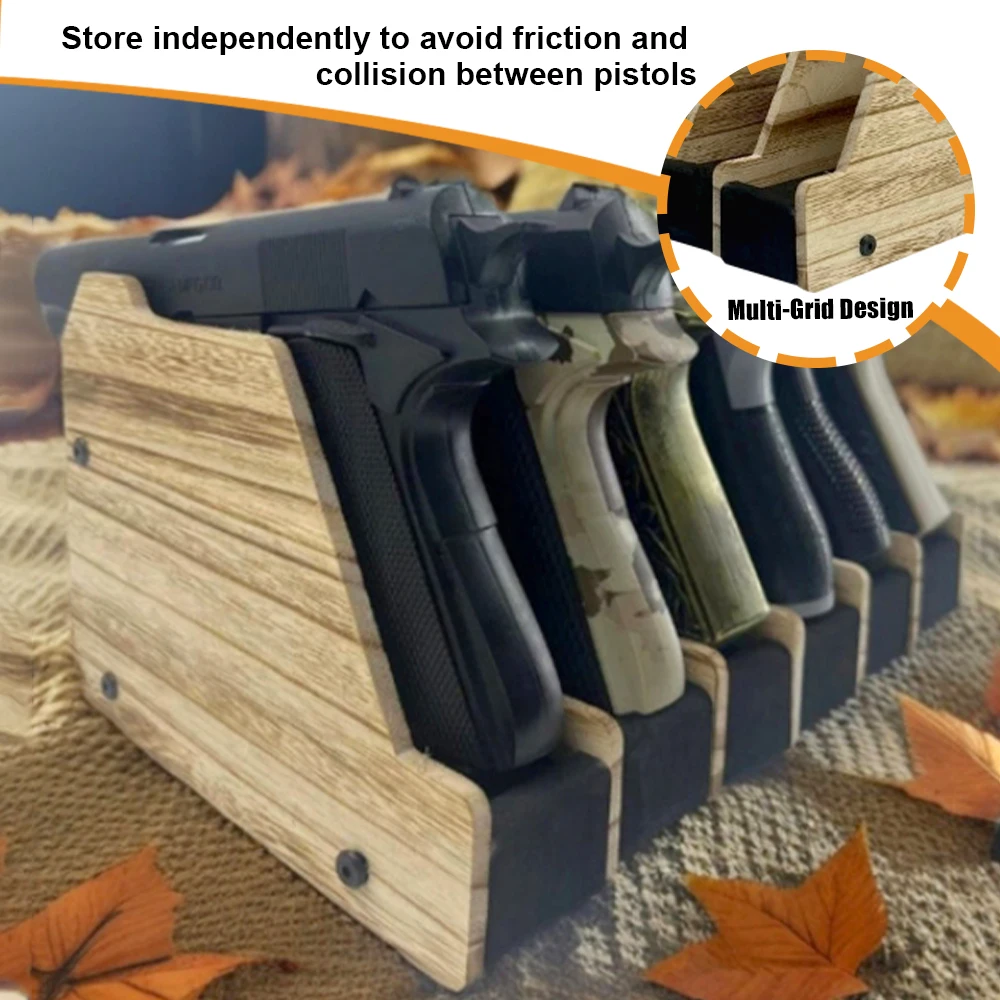4. Durable: The combination of wood and EVA material makes the pistol rack both sturdy and well cushioned, able to be used for a long time in various environments.