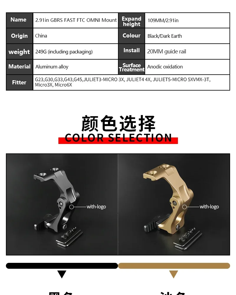 Soporte plegable abatible UN de Metal táctico GBRS CNC Base de visión de alta calidad para G33 G43 montaje óptico de liberación rápida 20mm Picatinny