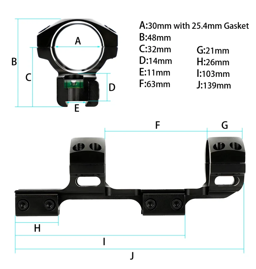 Compatible con la mayoría de visores, láseres y linternas con diámetro de 25,4 mm/30 mm.