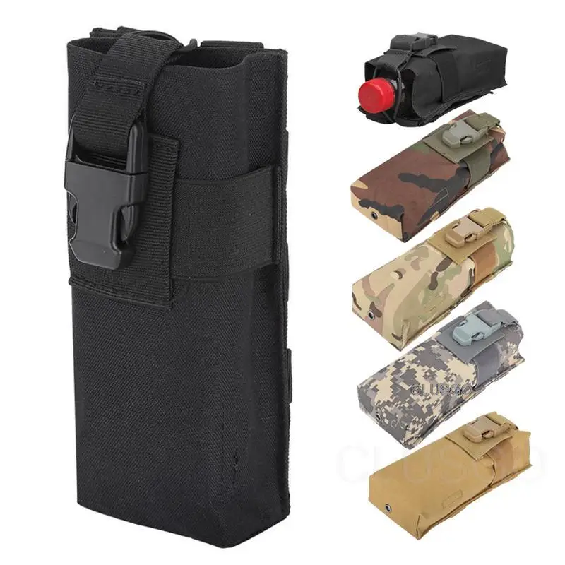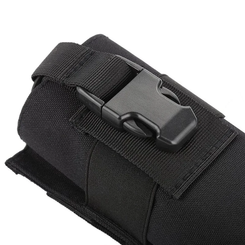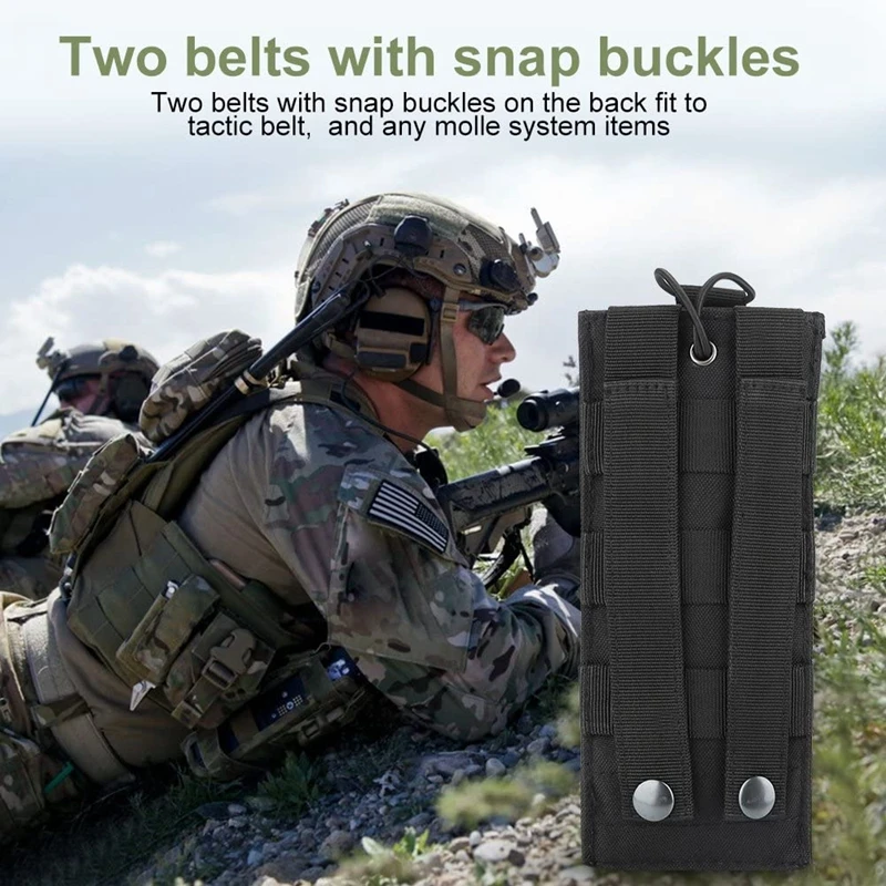 Dos cinturones con botones a presión en la parte posterior, adecuados para cinturones tácticos y cualquier artículo del sistema Molle. Puede sujetarlo a un chaleco táctico, mochila, cinturón o ropa.