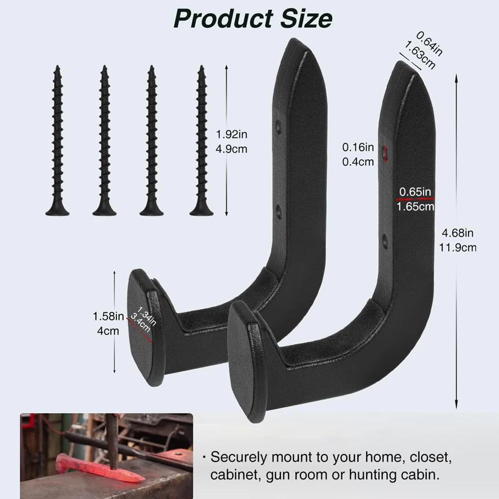 Diseñado para adaptarse a la mayoría de pistolas.Fusil de caza, rifle de asalto, pistola larga, arco compuesto, lanza antigua, espada larga, etc.Los ganchos para armas pueden montarse de forma estable en su hogar, armario, cocina, armario, sala de armas, garaje o cabina de caza.