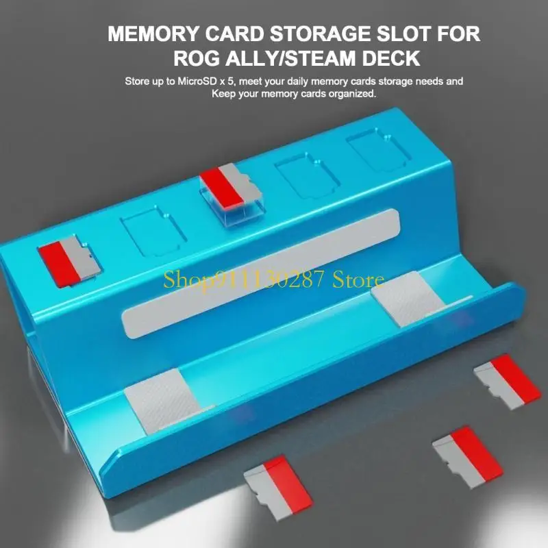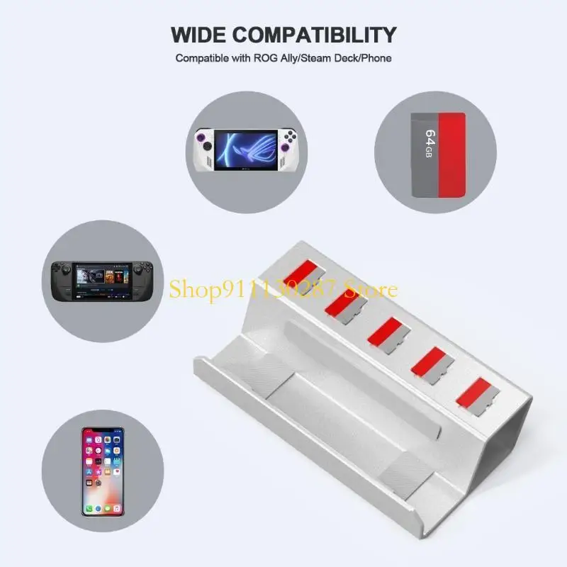 Hay 5 ranuras de almacenamiento para tarjetas de memoria en la parte superior del soporte, lo que permite el almacenamiento ordenado de tarjetas de memoria para un fácil acceso.