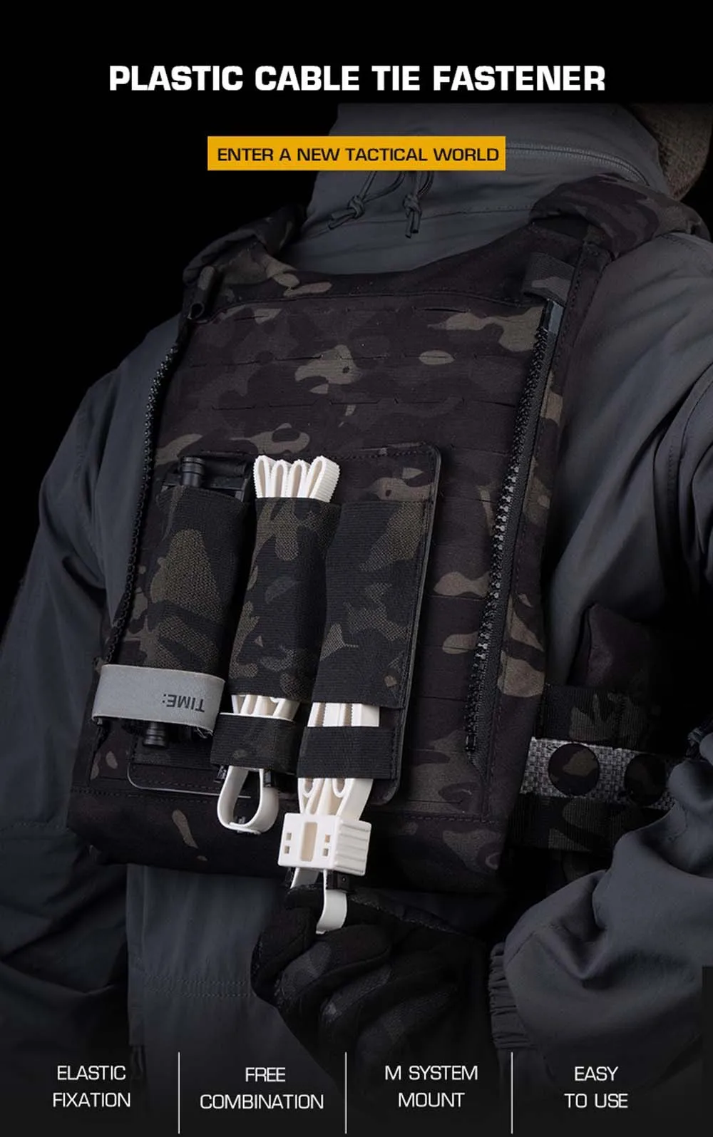 Soporte de sujeción de brida de Cable de plástico elástico táctico, Panel de almacenamiento de brida de Cable, soporte Molle para caza, chaleco Airsoft, portador de placa FCPC