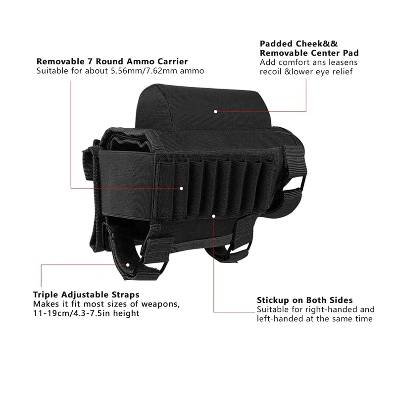 [Ambidiestro] bolsa de soporte de concha de reposabrazos de Rifle con 2 uds. 8 portador de munición extraíble para Winmag 300 308.