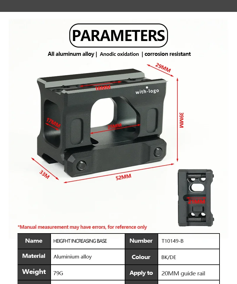 Soporte táctico de aumento de altura para armas, punto rojo, mira holográfica, Base de alcance, deportes de tiro al aire libre, adaptador de montaje Airsoft