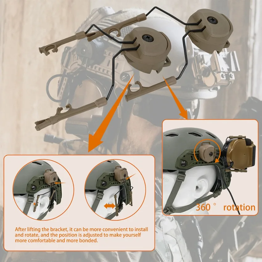 Soporte táctico para auriculares Airsoft, adaptador de riel de arco para casco Fast Ops Core para auriculares tácticos de caza COMTAC I II III
