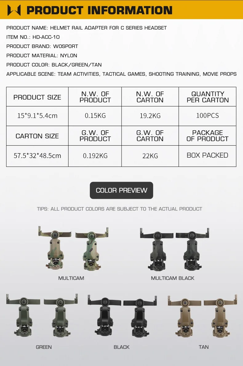 Soporte táctico para auriculares OPS Core Team Wendy, adaptador de riel para casco, caza, tiro, Airsoft, soportes para auriculares, riel MLOK