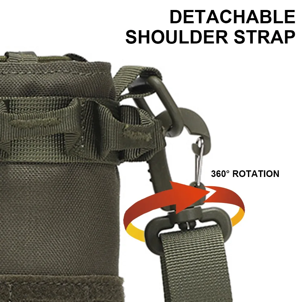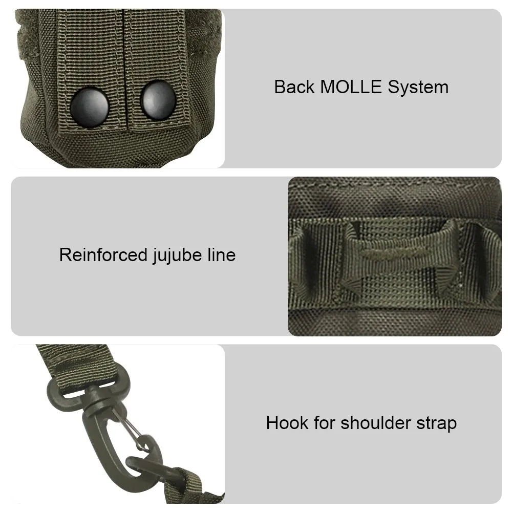 4: Sistema Molle: La bolsa táctica para botellas de agua es fácil de conectar con otros equipos de molinos, Y es fácil de reforzar para evitar que se tire o se enrolle por gravedad al caminar o caminar trote.