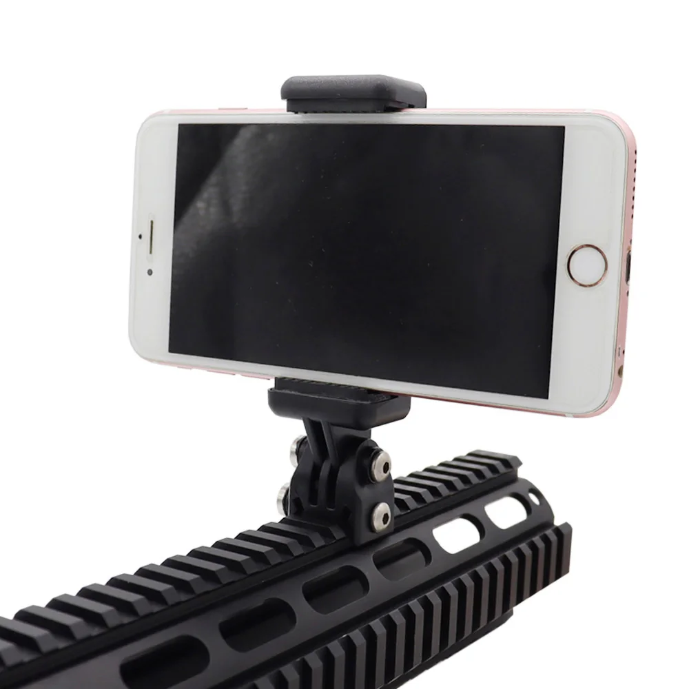 Soporte táctico para cámara de teléfono con montaje en riel Picatinny de 20mm para Iphone, teléfonos móviles, cámara deportiva Gopro para escopeta, caza Airsoft