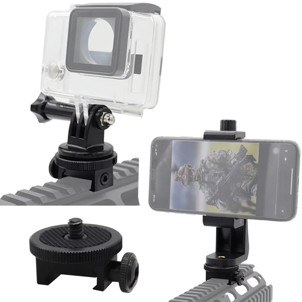 Riel Picatinny táctico, montaje de cámara para teléfono móvil, tornillo de 1/4 pulgadas, adaptador de montaje de cámara deportiva para teléfonos móviles, cámara Gopro