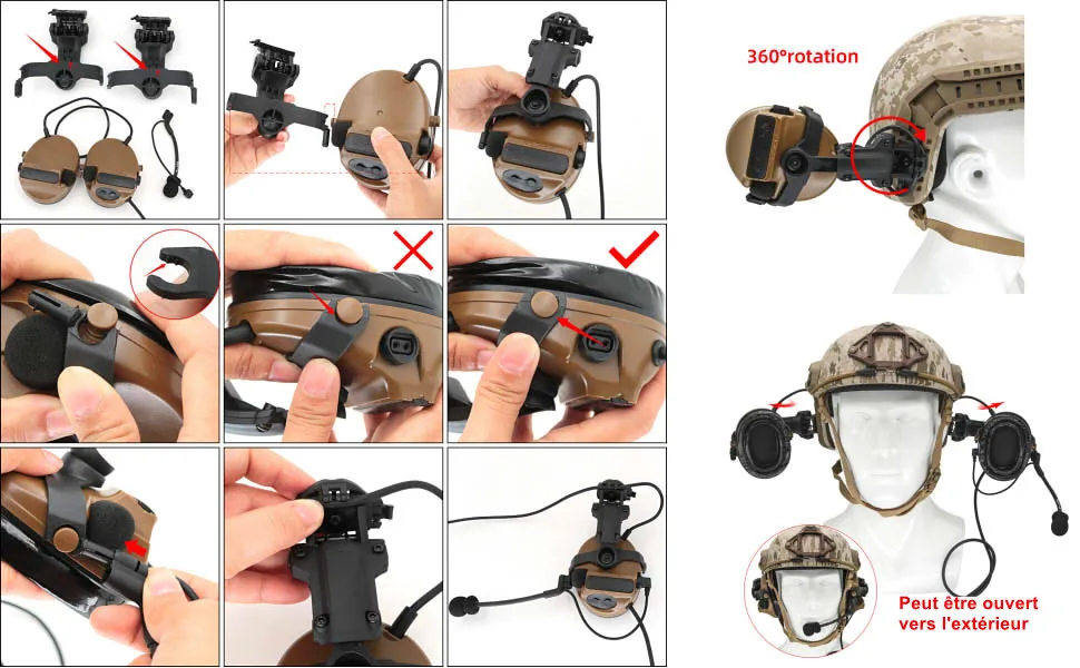 Soporte para casco táctico (riel ARC, riel Wendy, riel MLOK) El adaptador Comtac Mount es compatible con auriculares tácticos Comtac ii, auriculares Comtac iii