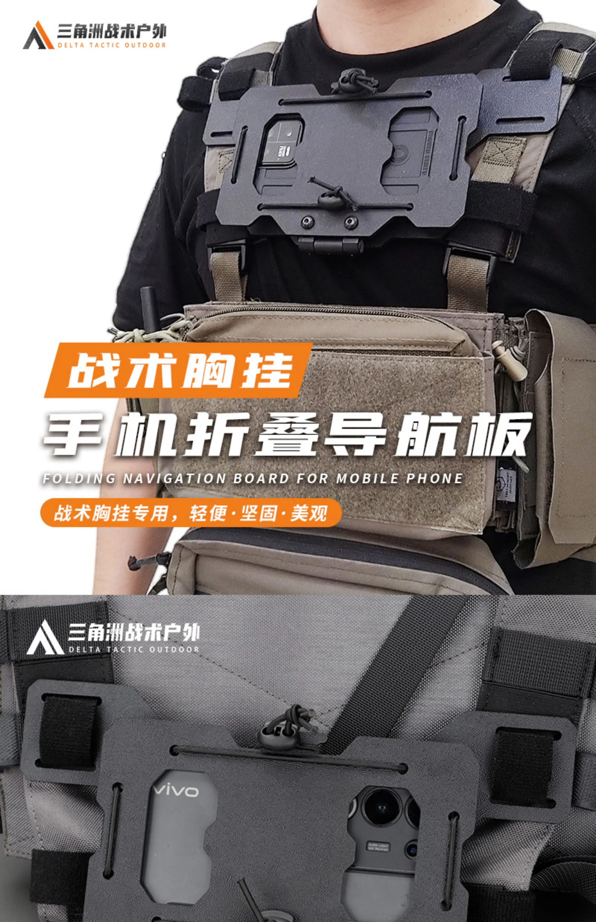 Soporte táctico para funda de teléfono MK4 colgante en el pecho, consola de operación de tablero de navegación montada en la parte delantera, almacenamiento plegable MOLLE