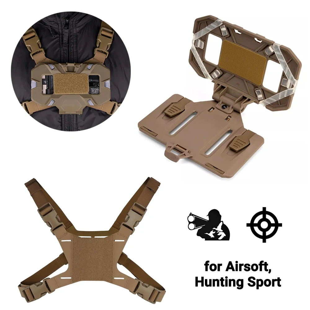 Este soporte táctico para el pecho sostiene de forma segura los teléfonos de 7 a 6,7" de forma segura a cualquier chaleco táctico o MOLLE con un fuerte accesorio de velcro para una visión clara.
