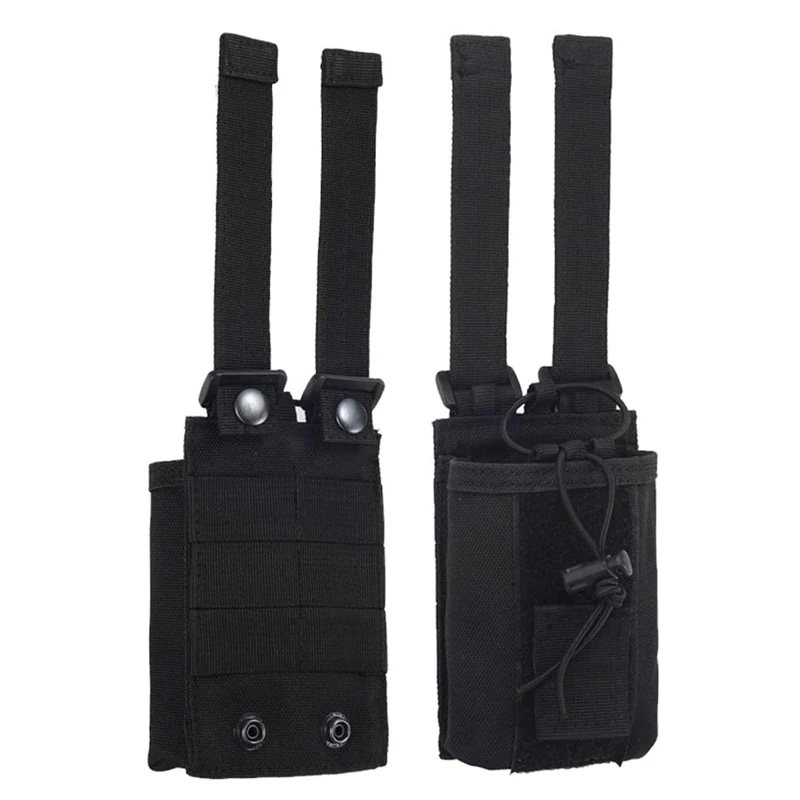 Diseñado con sistema Molle, se puede sujetar a mochila, chaleco, cinturón y otros equipos molle.