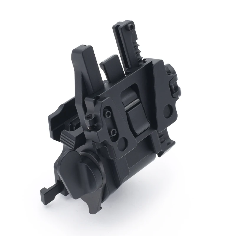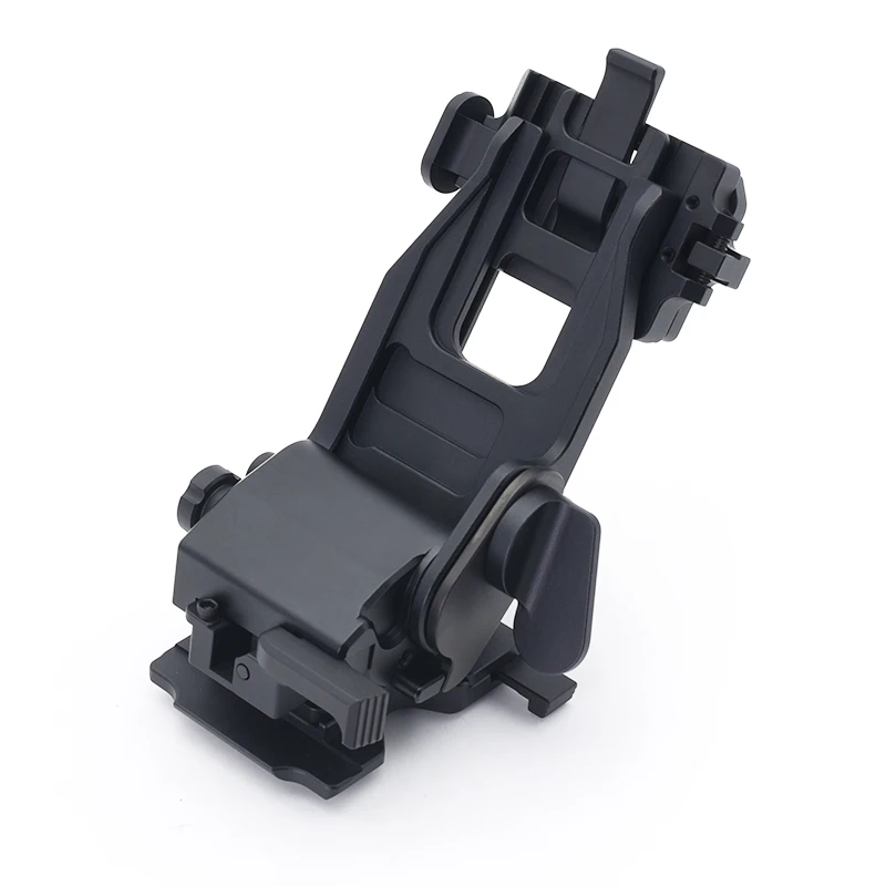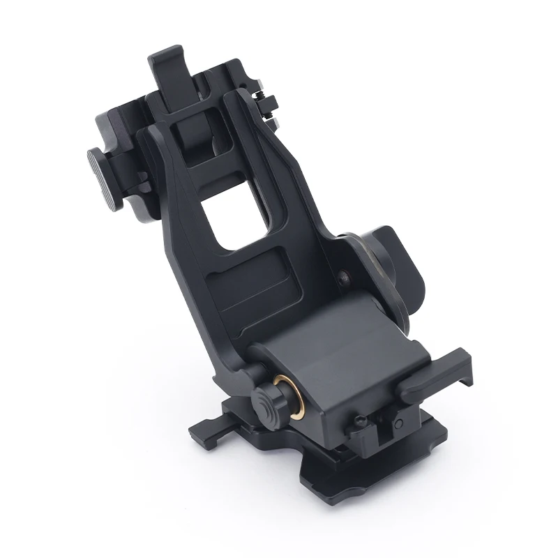 El soporte cuenta con un mecanismo de bloqueo seguro que garantiza que sus NVG permanezcan firmemente en su lugar durante el uso.Este accesorio seguro es crucial para mantener la estabilidad y el rendimiento de su equipo de visión nocturna, evitando caídas accidentales y minimizando el riesgo de daños.