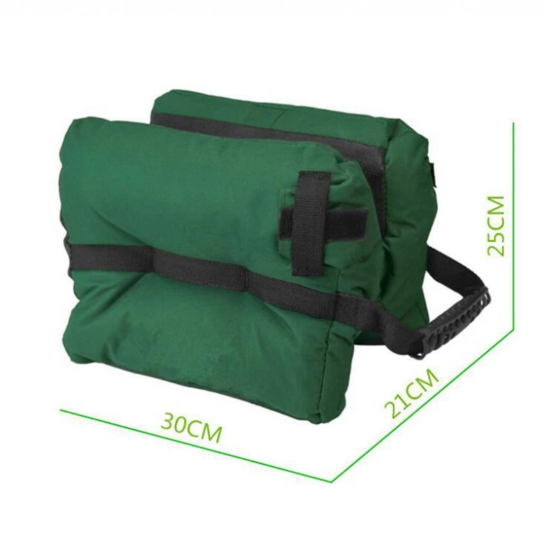 Nuevo y de alta calidad Diseño nuevo y mejorado para bolsas delanteras y traseras Lleno de medios de limpieza de latón Bolsas delanteras y traseras de conexión rápida para facilitar el transporte Especificaciones: Material: Tela Oxford 600D Color: verde tamaño: alrededor de 11,8 "* 9,8" * 8,3 "/Lista 30x25x21cm: 1 X bolsa de arena de campo de tiro delantera y trasera
