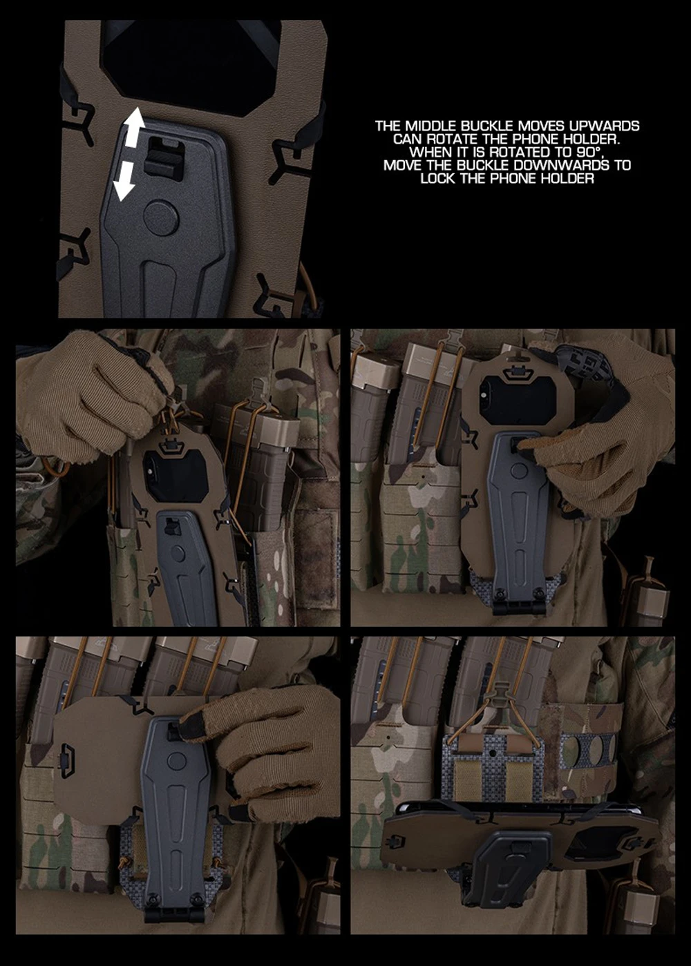 Soporte de teléfono móvil táctico, funda giratoria para teléfono, funda de montaje Molle, portador de teléfono para chaleco táctico, portador de placa, mochila