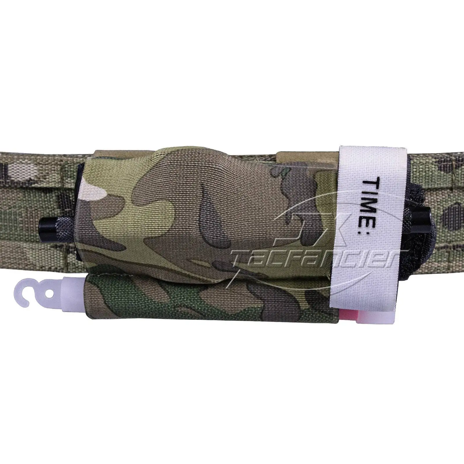 Soporte para torniquete, funda TQ, banda elástica, gancho y bucle Molle montado para accesorios de cinturón de servicio de aparejo de pecho