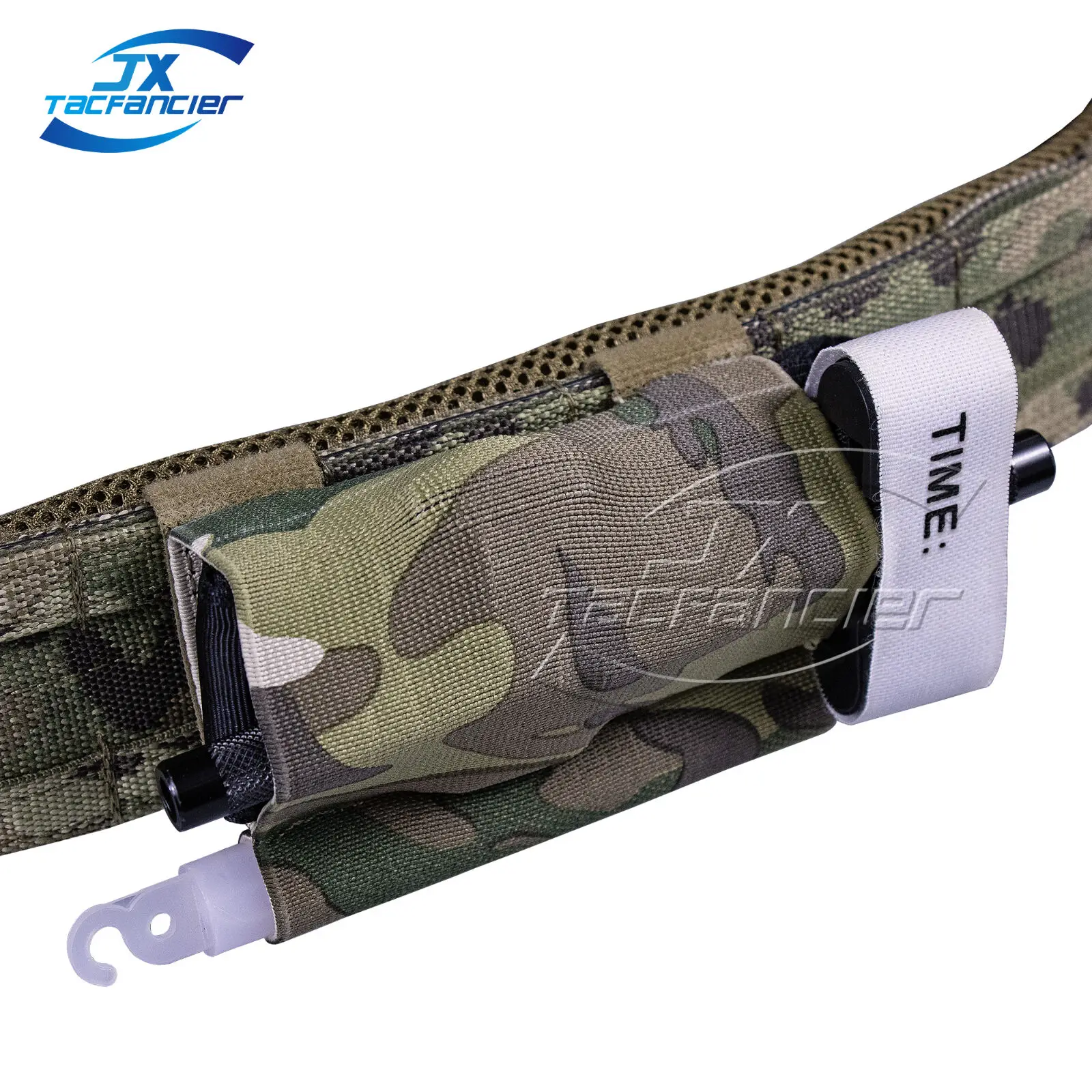 El soporte para torniquete molle tiene dos correas molle Hook and Loop de 1 pulgada en la parte posterior. No solo puede llevar el torniquete horizontalmente en el cinturón de servicio, sino también llevar el torniquete verticalmente en el equipo táctico para el pecho, la mochila o el chaleco. Se pueden modificar dos correas molle de gancho y bucle en la parte posterior de la funda TQ para que se ajusten a cinturones de 1,5 a 2,5 pulgadas. La funda superior de la funda para torniquete puede contener torniquetes de varios tamaños. La funda inferior tiene capacidad para rotulador, luz química de 6 pulgadas u otros artículos adecuados. Puede guardar el torniquete de forma rápida y cómoda pasando a través de la funda TQ para cinturón. Lo más importante es que puedas sacar el torniquete con una sola mano un acceso rápido y fácil cuando ocurra una emergencia.