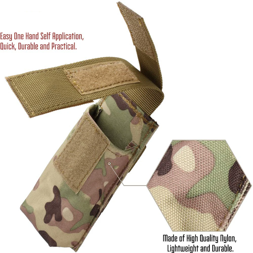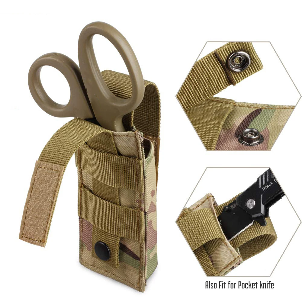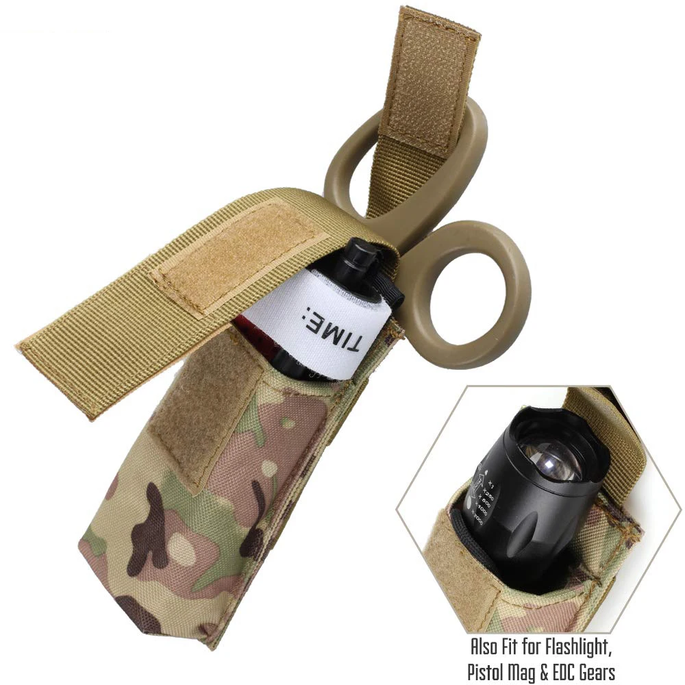 PORTA HERRAMIENTAS VERSÁTIL:Bolsa de herramientas Molle no solo para tijera EMT, sino también para torniquete, linterna táctica, revista de pistola como M1911,USP,92F, revista Glock. Cómodo tamaño práctico: 5 "X 2" x 1 "(H * L * W).