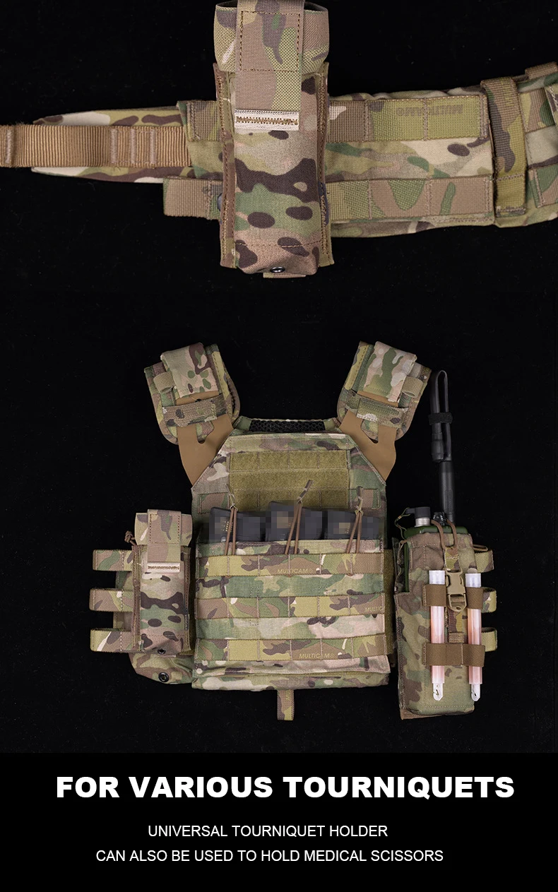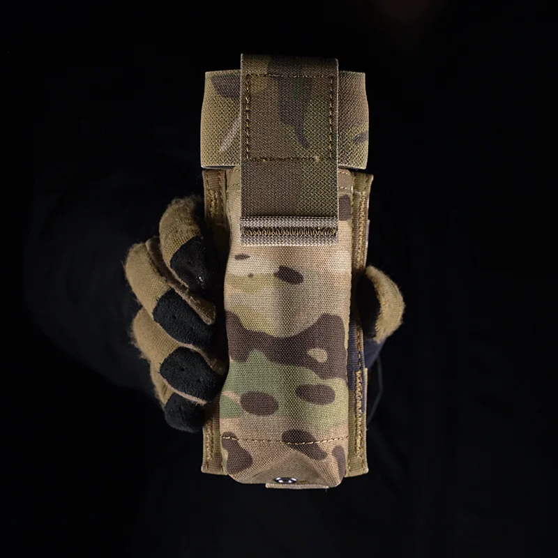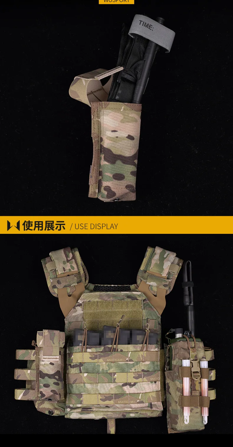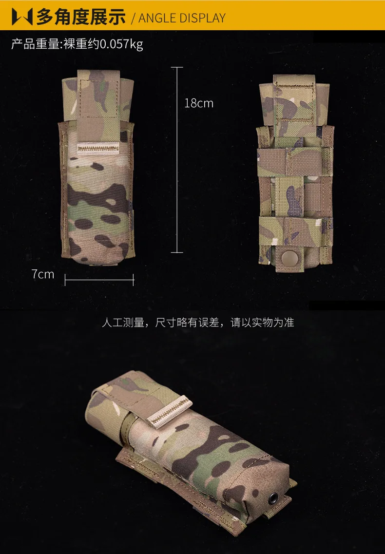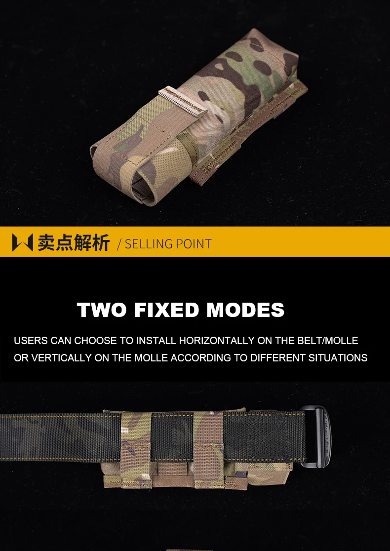 Según las diferentes situaciones, puede optar por instalarlo horizontalmente en el cinturón/MOLLE o verticalmente en el sistema Molle.