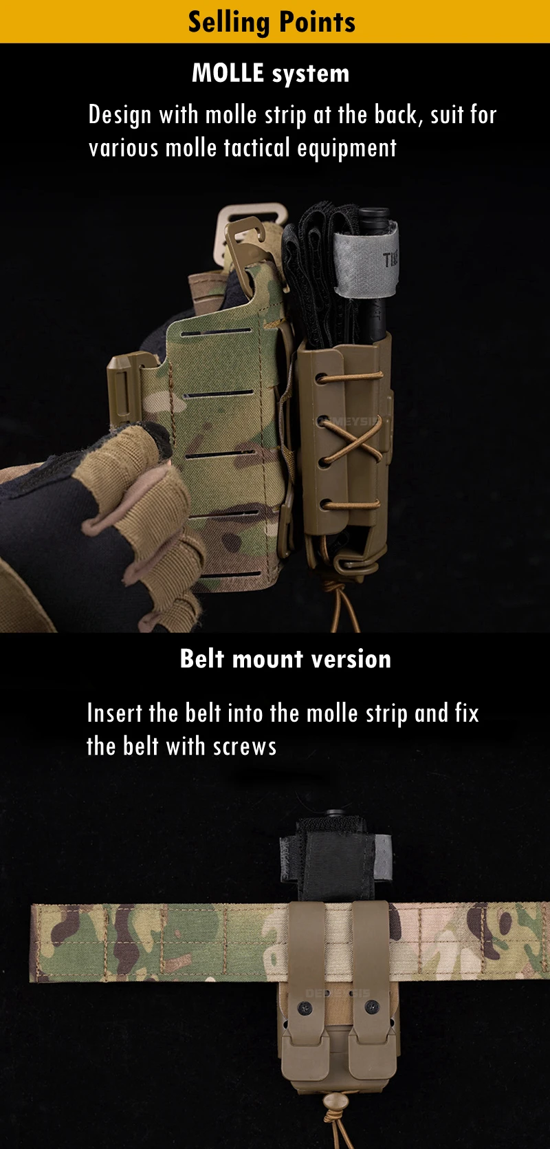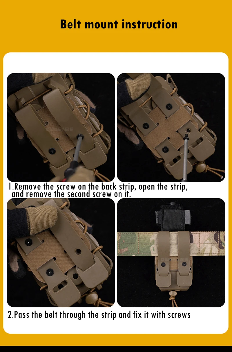 ● Versión de montaje de cinturón. Inserte el cinturón en la tira de molle y fije el cinturón con tornillos.
