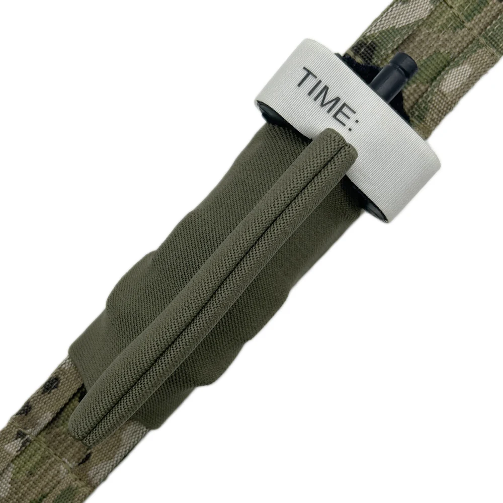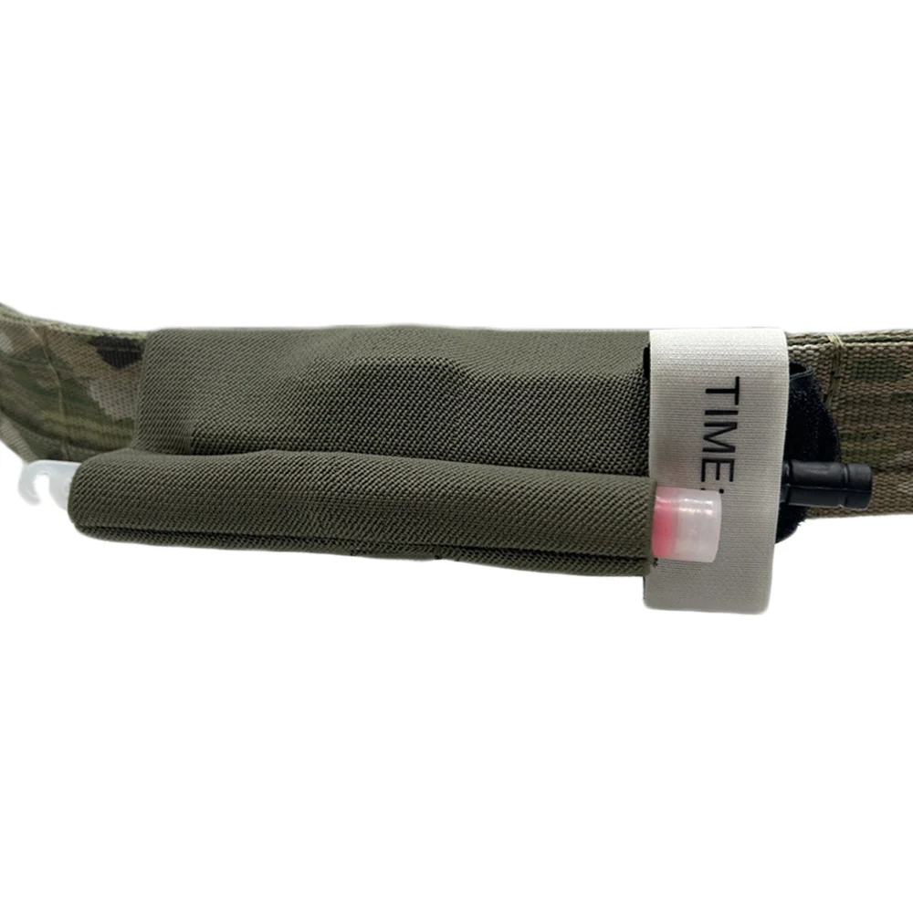 El soporte para torniquete está construido con una banda elástica con buena retención para asegurar la seguridad de los torniquetes o pequeños kits médicos. Y la longitud del soporte elástico para TQ es de 5 pulgadas/12,7 cm para que pueda cubrir la mayor parte del torniquete. La bolsa TQ montada en el cinturón de servicio se adapta a un cinturón de batalla de 1,5 o 1,75 pulgadas.
