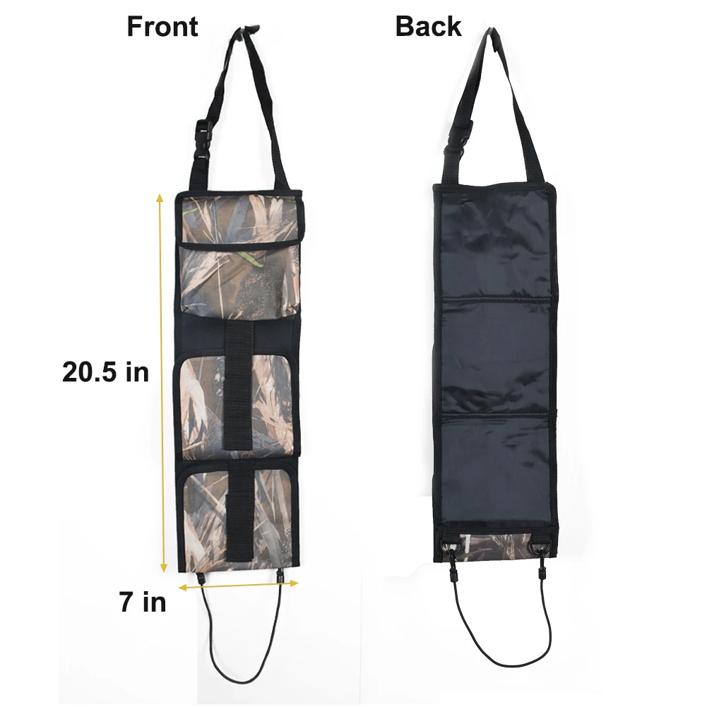 1. 2 bolsillos de almacenamiento pequeños: los bolsillos en la parte superior de las eslingas de la pistola del asiento trasero son ideales para munición, cuchillos de bolsillo, etc.